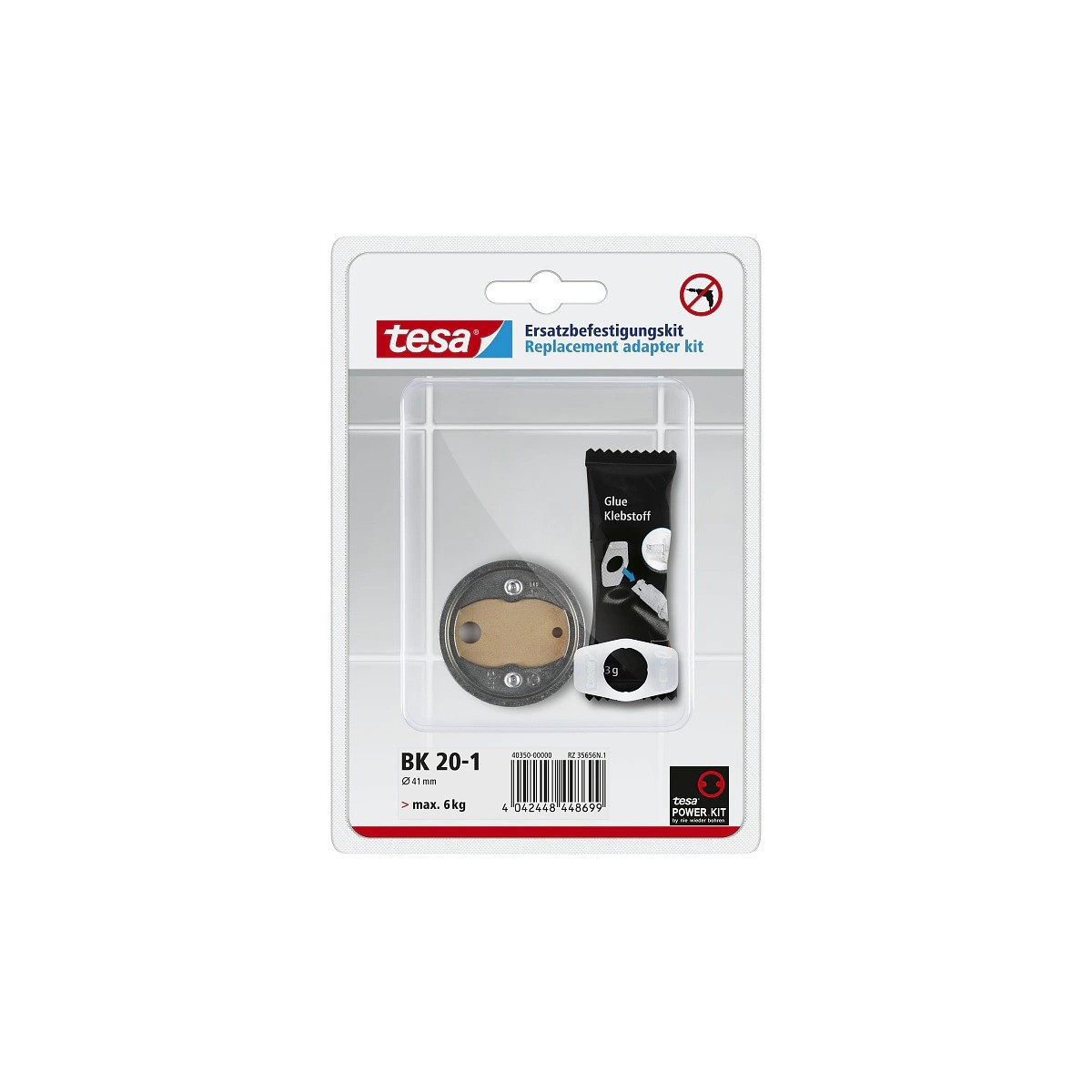 Mit der innovativen tesa® Power.Kit Befestigungstechnologie können Sie Badaccessoires sicher an der Wand befestigen. Dabei können Sie auf Bohren verzichten und vermeiden Schäden am Untergrund. Zur Klebelösung gehört der Befestigungsadapter BK20, der z.B. in den Produktserien ekkro, luup, klaam und SMOOZ verwendet wird. In Kombination mit der Klebmasse sorgt er für eine hohe Haltekraft.