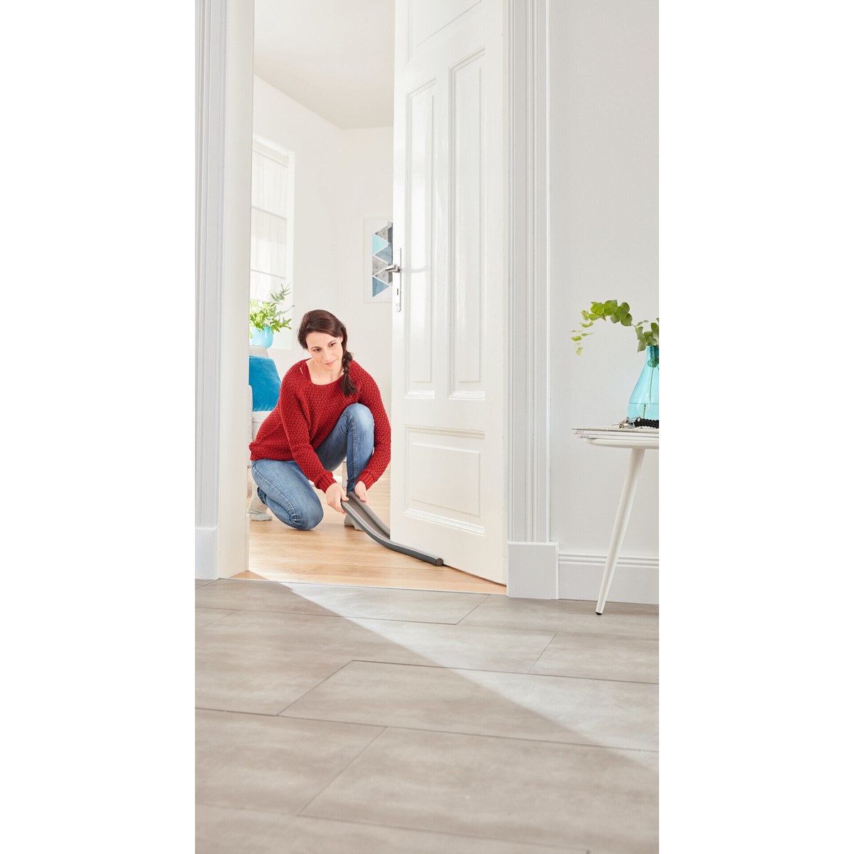 Zugluftstopper für glatte Parkett-, Laminat- oder Fliesenböden