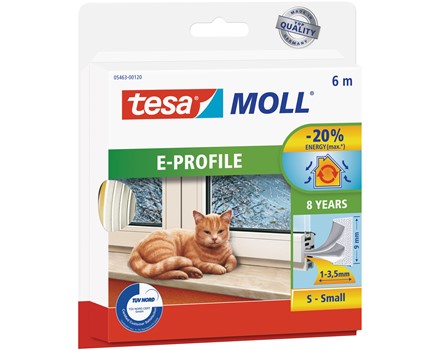Die selbstklebende, einfach anzubringende tesamoll® CLASSIC E-Profil Gummidichtung für Fenster und Türen ist extrem witterungsbeständig aufgrund der hohen Qualität des Profil-Gummis. Spart bis zu 20% Heizkosten ein.*