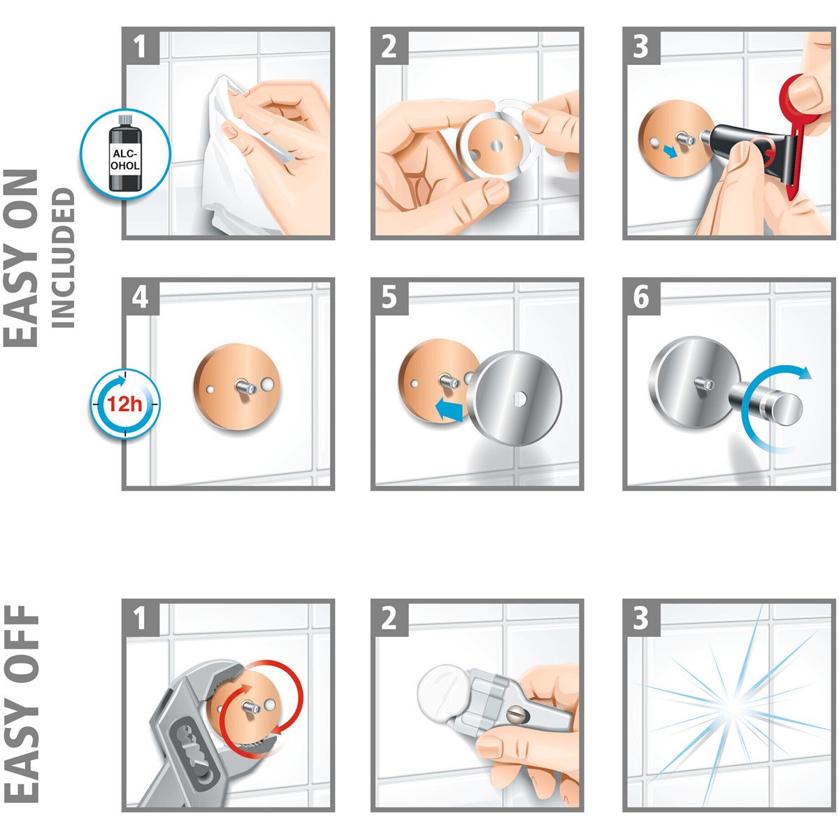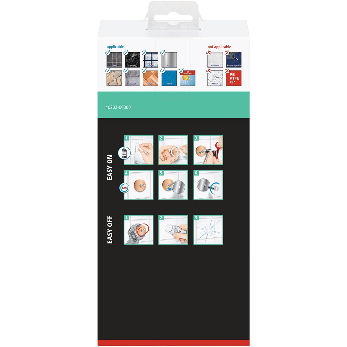 • Hält auf Fliesen, Metall, Naturstein, Marmor, Glas, Holz und vielen Kunststoffen