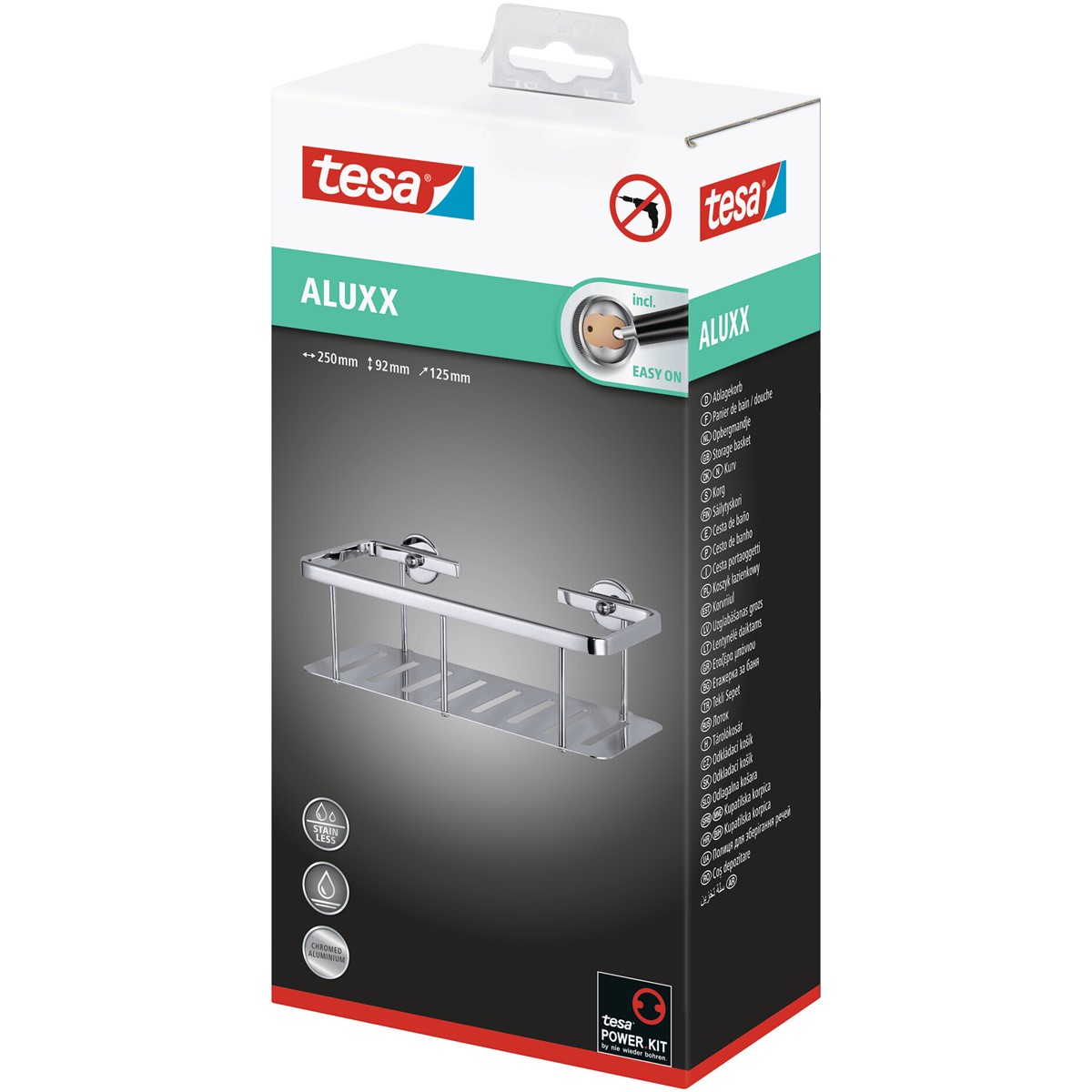 Die tesa® ALUXX Duschablage ist aus vielen Gründen die beste Wahl für die Aufbewahrung von Duschutensilien. Erstens lässt sie sich einfach befestigen. Statt zu bohren, verwenden Sie die innovative Klebelösung. Befestigungsadapter und Klebmasse sorgen für eine hohe Haltekraft. Zweitens vermeiden Sie Schäden am Untergrund, da der Bohrer im Schrank bleibt. Drittens können Sie die Duschablage jederzeit ablösen und mit einem neuen Adapter (BK43-2) wiederverwenden. Viertens ermöglicht die tiefe Bodenplatte einen sicheren Stand. Und fünftens überzeugt sie mit einem eleganten Design. tesa.Power.Kit Glue: Achtung! Bei der Verwendung kann gefährlicher lungengängiger Staub entstehen. Staub nicht einatmen.