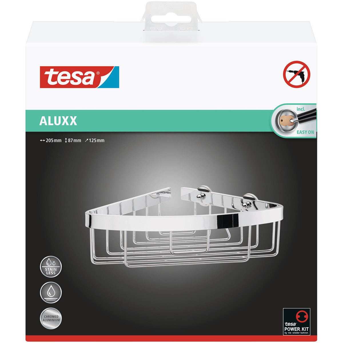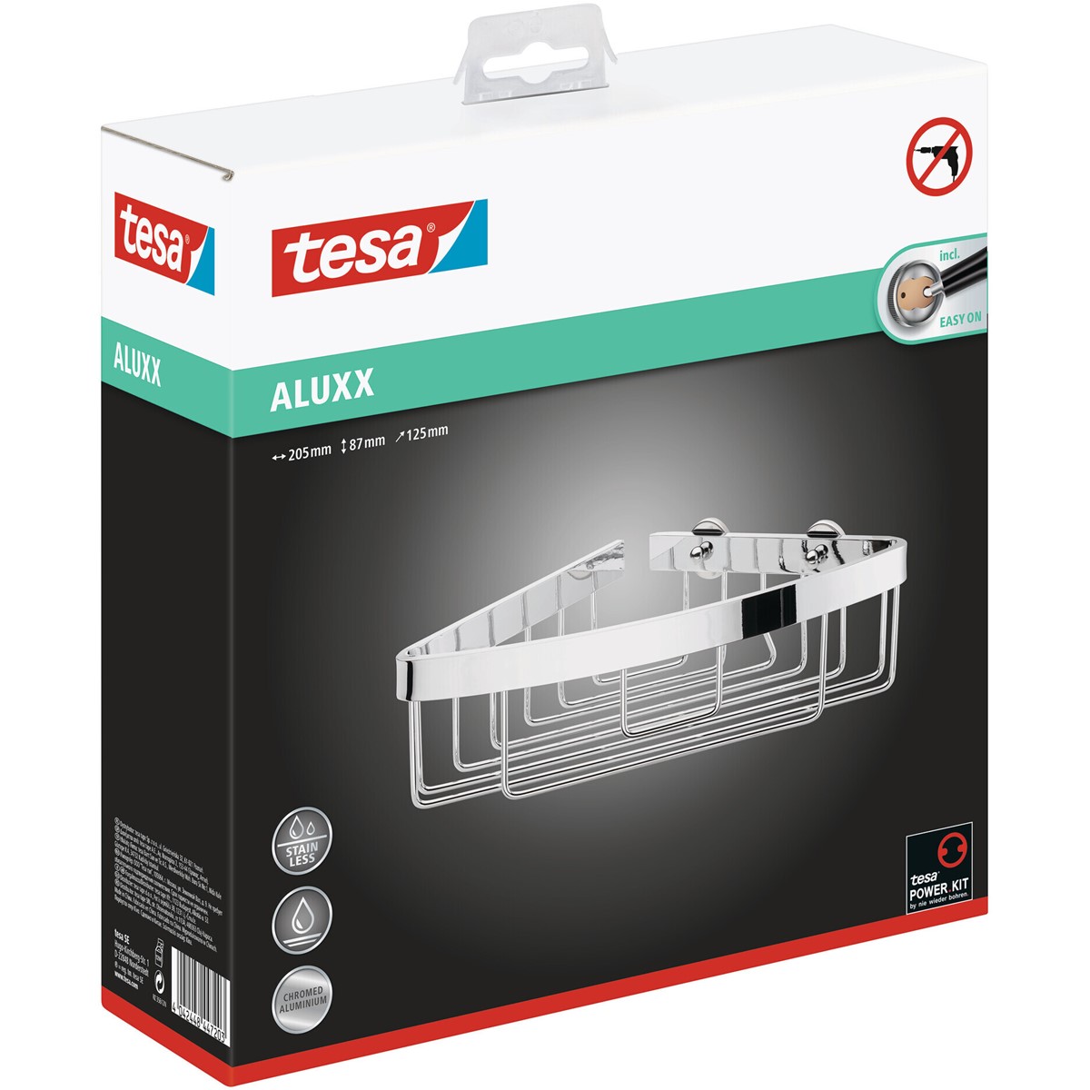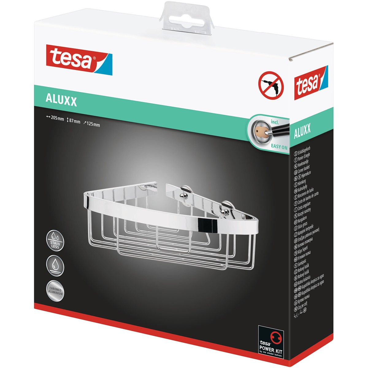 Die tesa® ALUXX Eck-Duschablage lässt sich dank innovativer Klebelösung ganz bequem ohne Bohren befestigen. Sie bietet Platz für diverse Duschutensilien und ist auch optisch ein echtes Highlight. Statt zu bohren und den Untergrund unweigerlich zu beschädigen, kleben Sie die Duschablage einfach an die Wand. Die Kombination aus Befestigungsadapter und Klebmasse sorgt dabei für eine hohe Belastbarkeit. Sie können die Eck-Duschablage jederzeit wieder entfernen. Mit einem neuen Adapter (BK43-2) lässt sich die Ablage wiederverwenden und neu positionieren. tesa.Power.Kit Glue: Achtung! Bei der Verwendung kann gefährlicher lungengängiger Staub entstehen. Staub nicht einatmen.