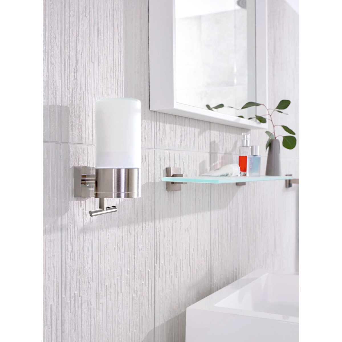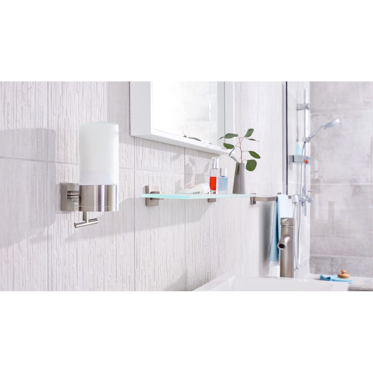 • Exquisites Design, Edelstahloptik, garantiert rostfrei, rechteckige Wandplatte, Soft Close-Funktion, Ablagefläche aus Milchglas, z.B. für Smartphones