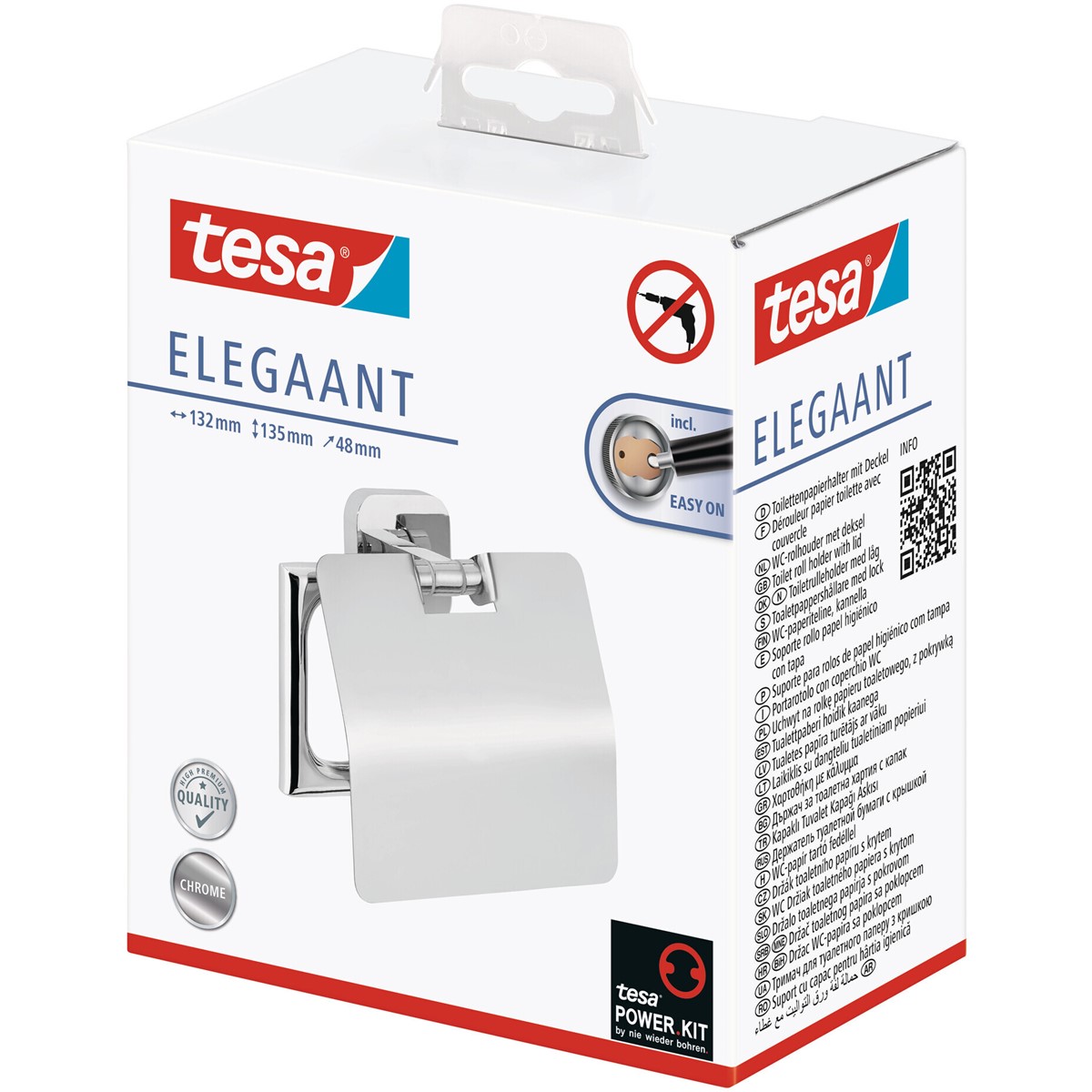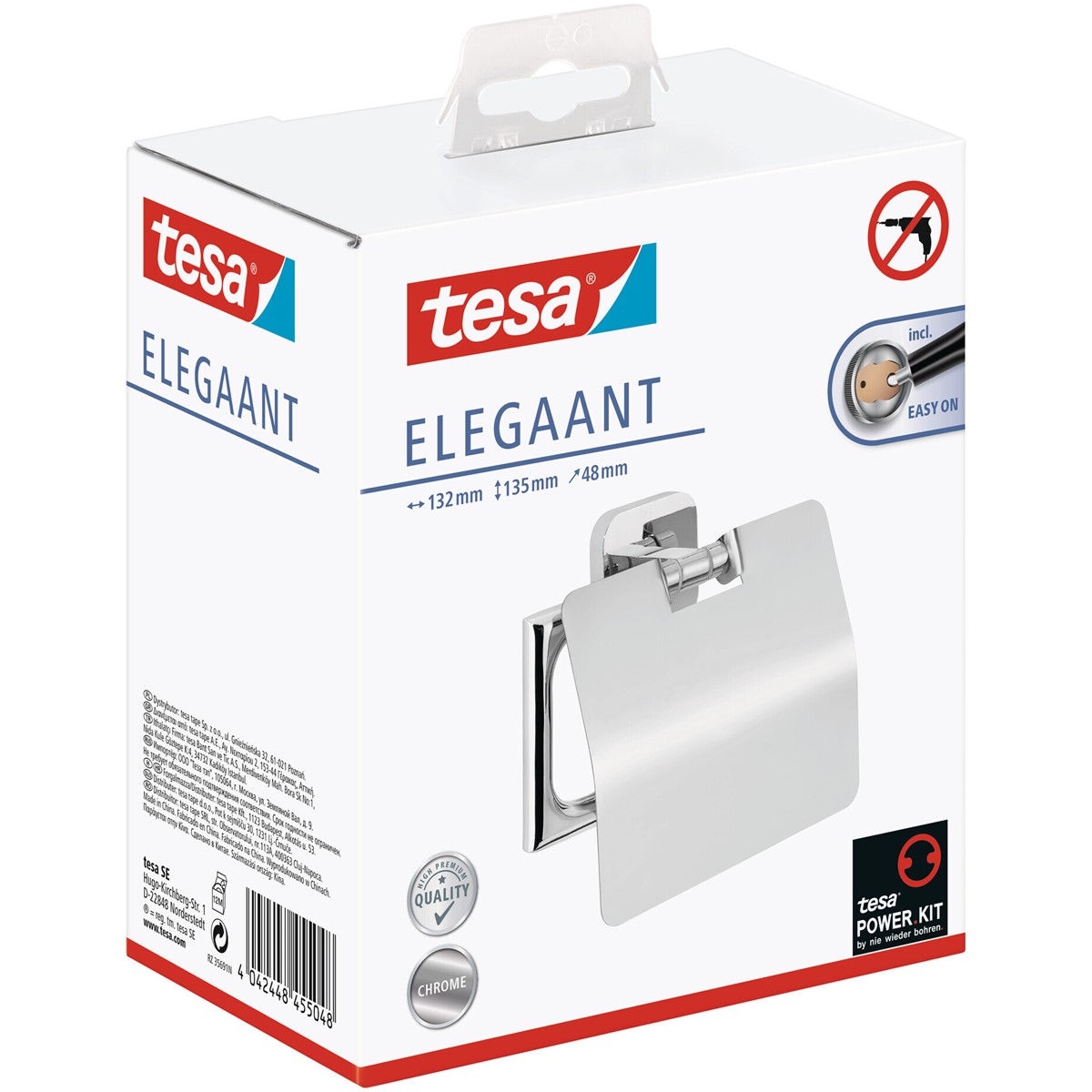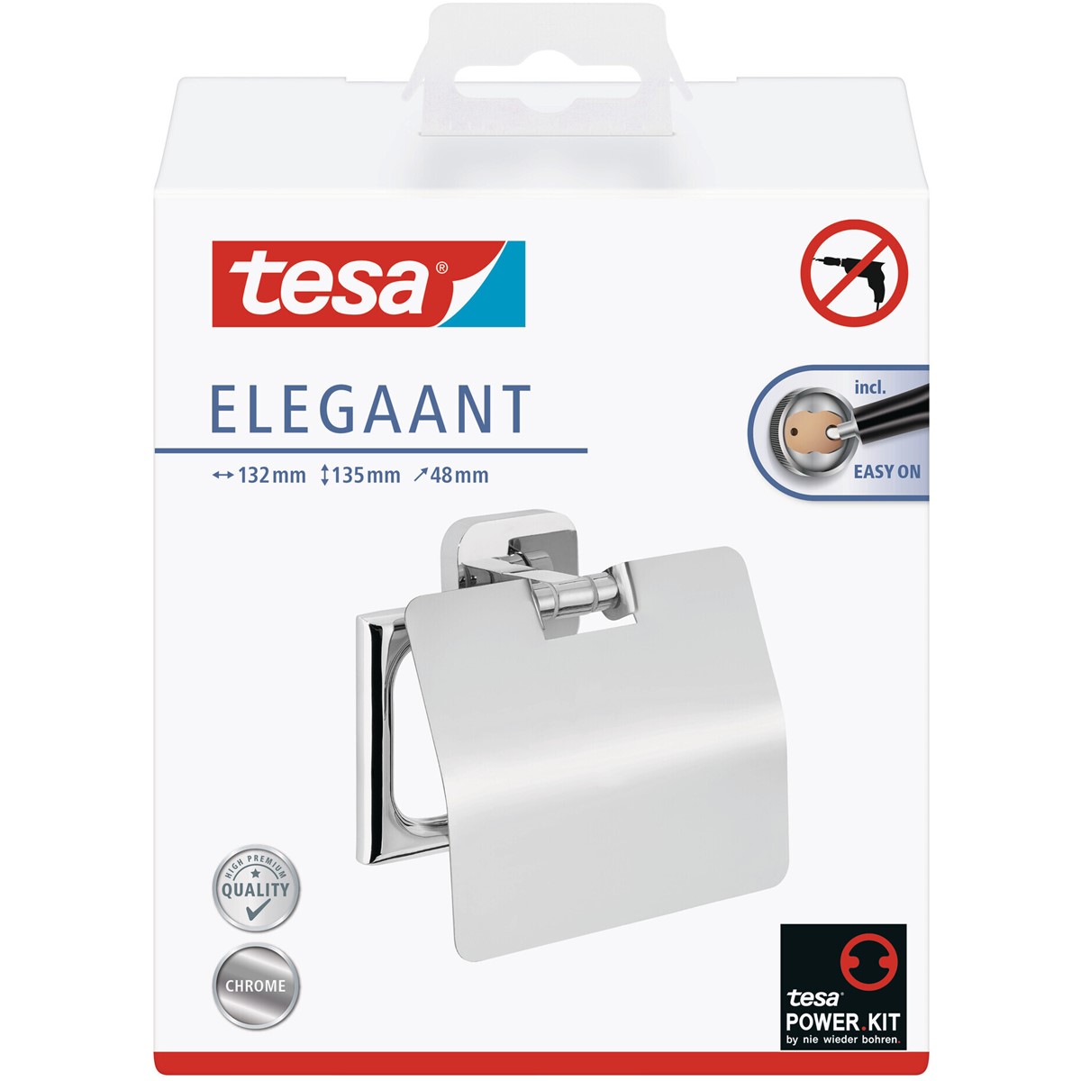 Die Aufbewahrung von Toilettenpapier sollte funktional, idealerweise aber auch optisch ansprechend sein. Mit seinem außergewöhnlichen und einfallsreichen Design meistert der tesa® ELEGAANT Toilettenpapierhalter (mit Deckel) die zweite Herausforderung mühelos. Außerdem lässt er sich ohne Bohren und Schäden montieren. Nachdem Sie den Befestigungsadapter angebracht und mit der Klebmasse gefüllt haben, warten Sie 12 Stunden und können den Halter sicher anbringen. Trotz der hohen Haltekraft können Sie ihn jederzeit entfernen und mit einem neuen Adapter (BK20) wiederverwenden. tesa.Power.Kit Glue: Achtung! Bei der Verwendung kann gefährlicher lungengängiger Staub entstehen. Staub nicht einatmen.