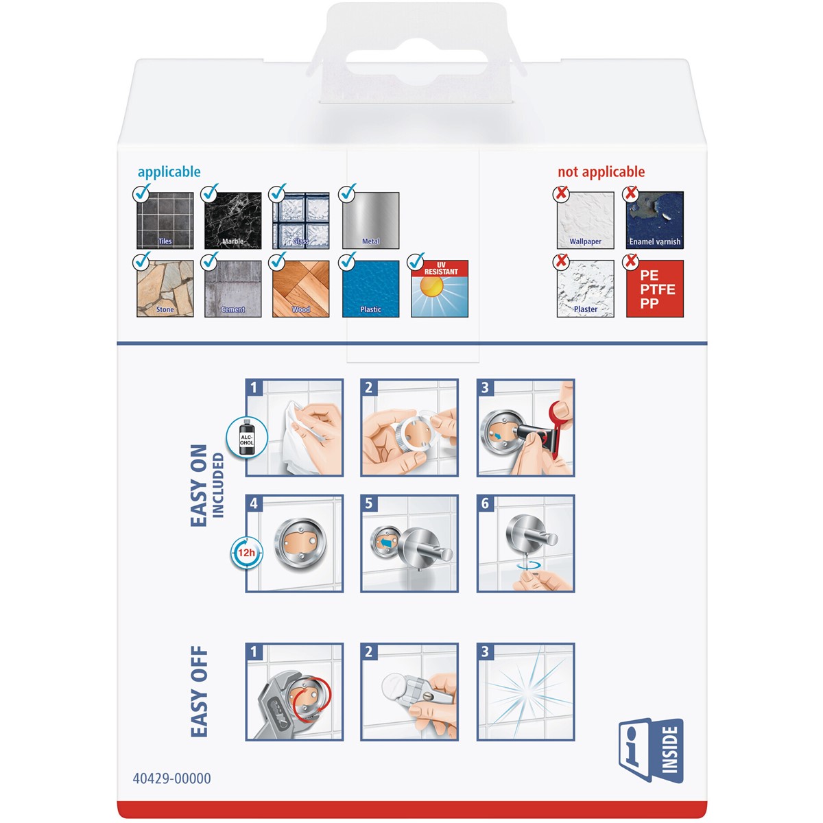 Hält auf Fliesen, Metall, Naturstein, Marmor, Glas, Holz und vielen Kunststoffen