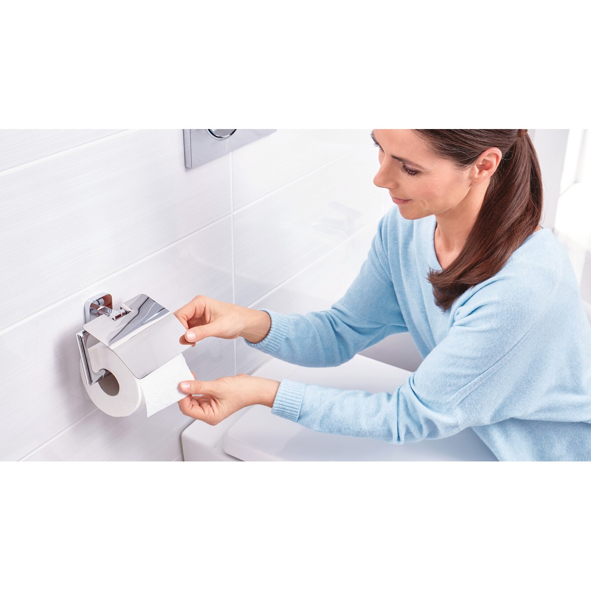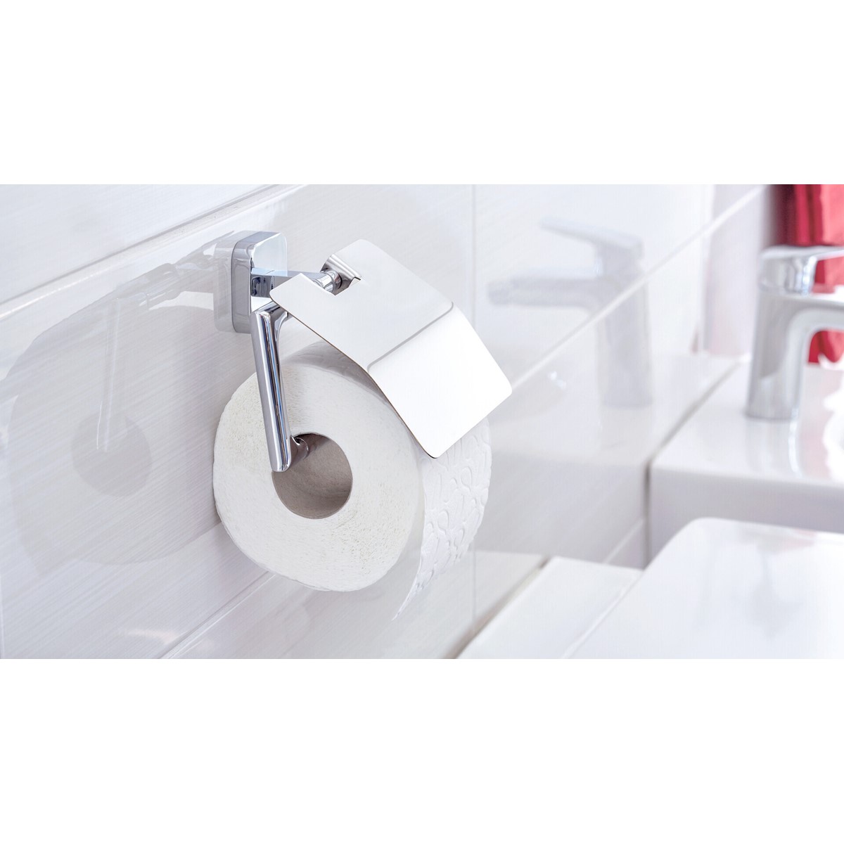 Toilettenpapierhalter, mit Deckel, innovative tesa® Power.Kit Befestigungstechnologie