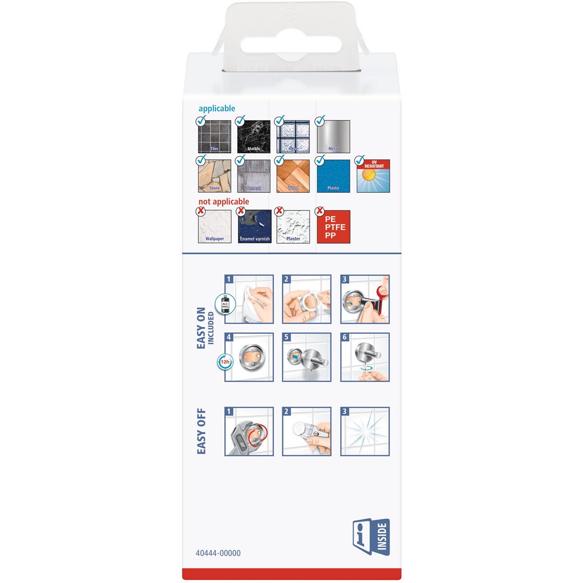 Dank der innovativen Klebelösung können Sie bei der Montage des tesa® ELEGAANT Ersatzrollenhalters auf Bohren verzichten und vermeiden Schäden am Untergrund. Nachdem Sie den Befestigungsadapter angebracht und mit der Klebmasse gefüllt haben, warten Sie 12 Stunden und können den Ersatzrollenhalter anbringen. Trotz der hohen Haltekraft können Sie ihn jederzeit entfernen und mit einem neuen Adapter (BK20) wiederverwenden. Auch optisch ist die praktische Ersatzrollenhalterung eine Bereicherung für jedes Badezimmer bzw. Gäste-WC. tesa.Power.Kit Glue: Achtung! Bei der Verwendung kann gefährlicher lungengängiger Staub entstehen. Staub nicht einatmen.