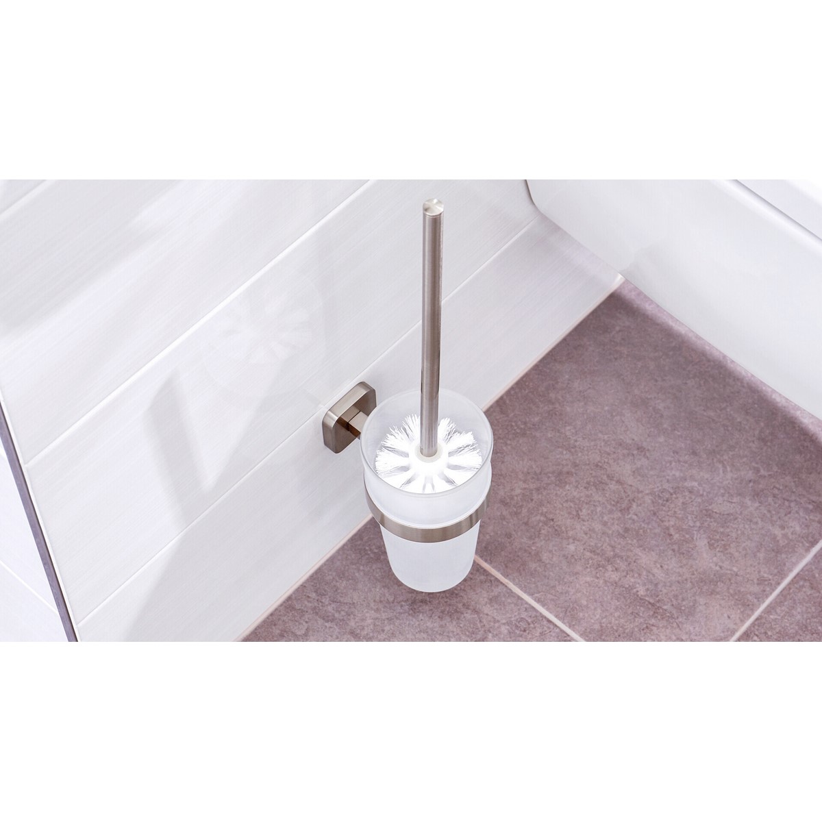 Toilettenbürstenhalter mit innovativer tesa® Power.Kit Befestigungstechnologie für bequeme Wandmontage