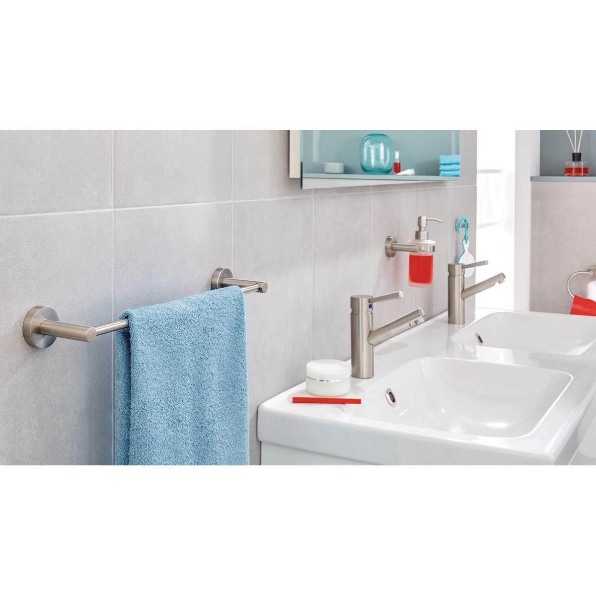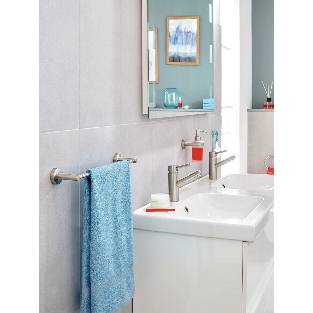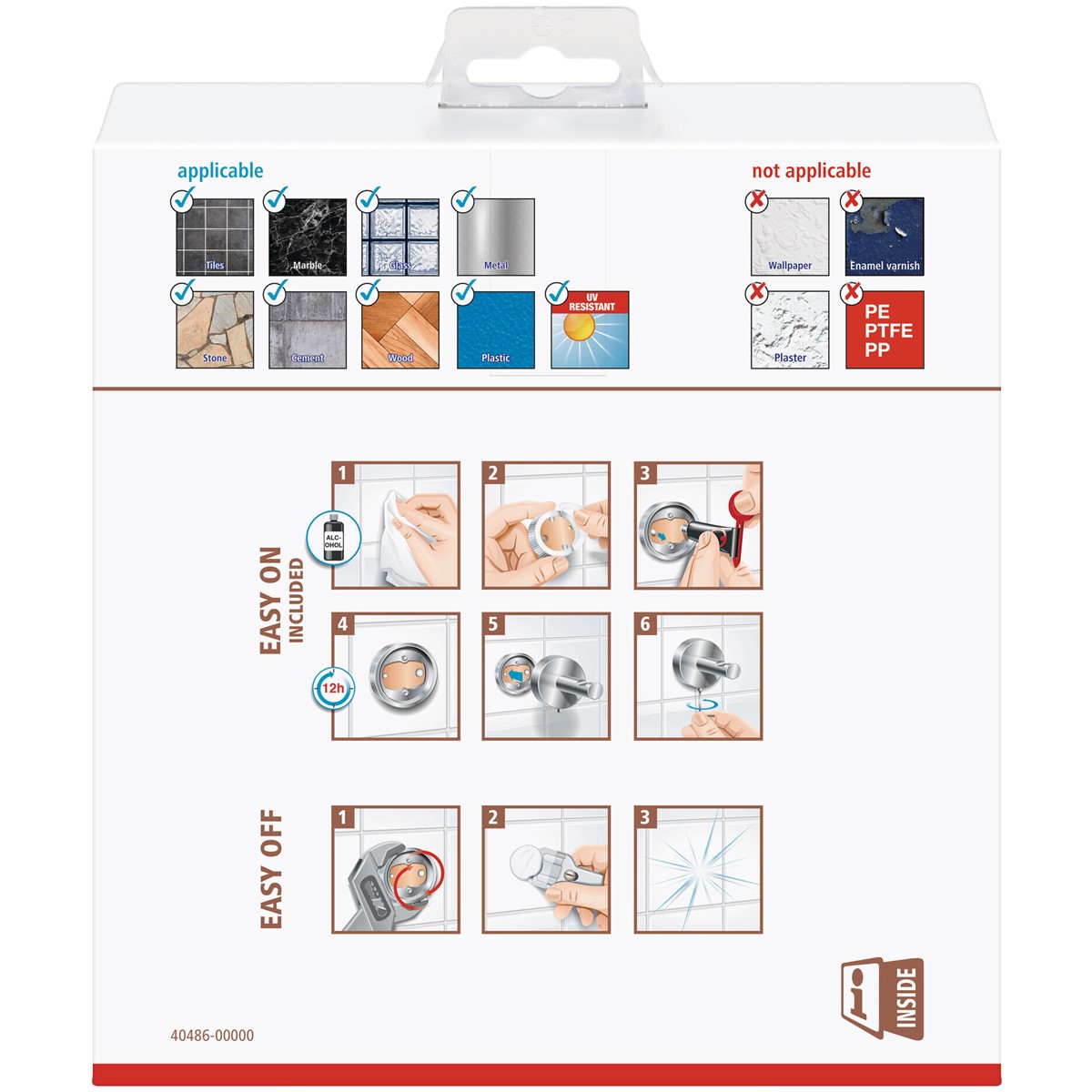 Wenn es um das Aufhängen von Handtüchern geht, ist der tesa® NOOBLESSE Handtuchring angesichts der unzähligen Haken und Stangen in den Badezimmern weltweit ein echter Exot. Mit seinem schicken Design ist er auch ein echter Hingucker. Runde Formen und Edelstahloptik dominieren. Der Handtuchring überzeugt mit einer bequemen Montage, die dank Klebelösung ohne Bohren auskommt. Sie benötigen lediglich den Befestigungsadapter, die Klebmasse und einen Inbus (im Lieferumfang). Ihre Wand bleibt stets unbeschädigt. Sie können den Ring jederzeit wieder ablösen und mit einem neuen Adapter (BK20) wiederverwenden. tesa.Power.Kit Glue: Achtung! Bei der Verwendung kann gefährlicher lungengängiger Staub entstehen. Staub nicht einatmen.