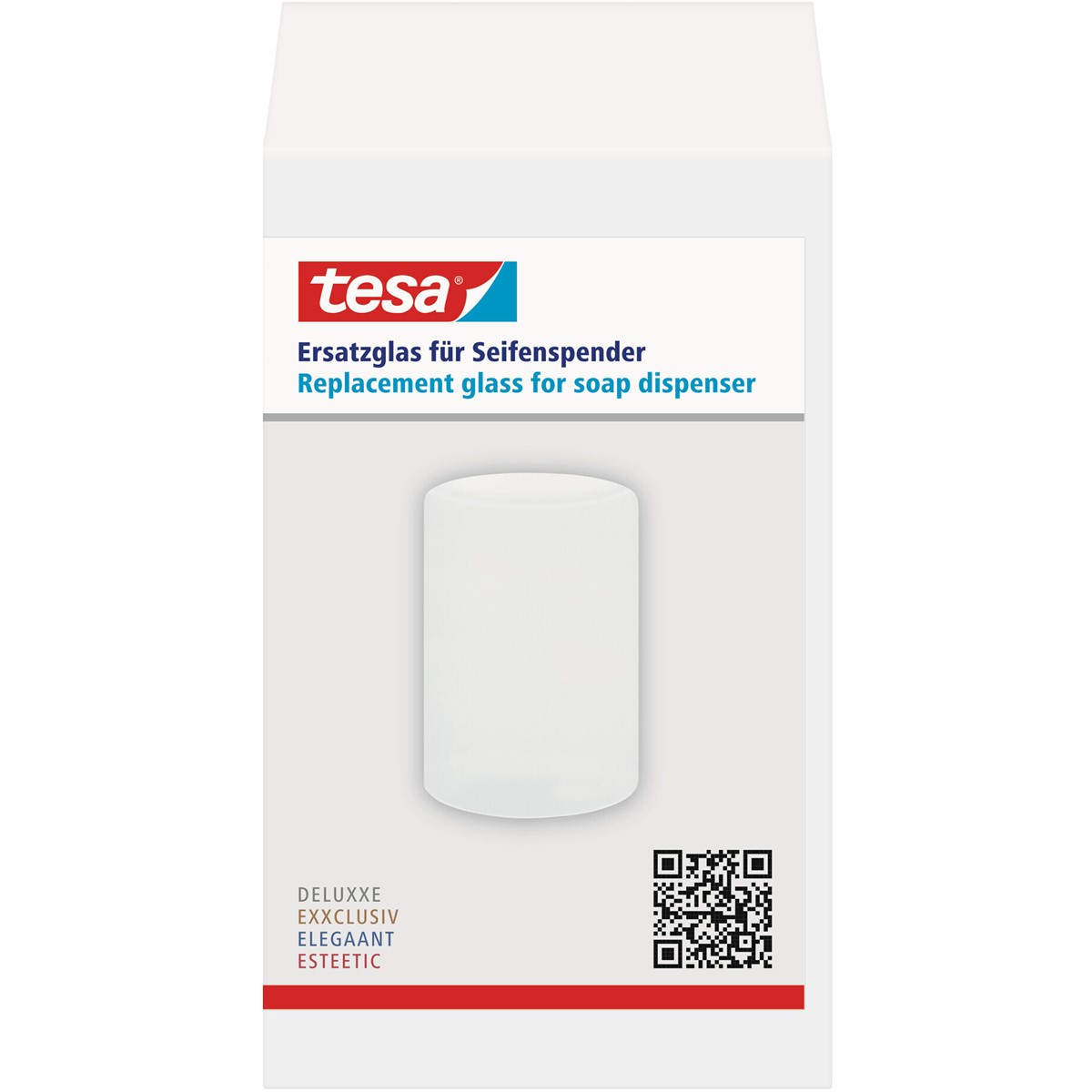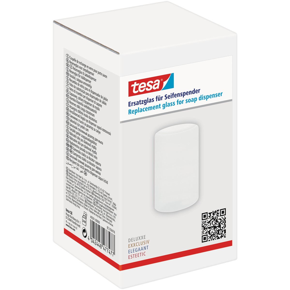 Die Ersatzflasche für Hand-Seifenspender zeichnet sich mit ihrem runden Stil und dem satinierten Glas aus. Man muss nur den Behälter auswechseln und nicht das komplette Set. Sie können das Ersatzteil für die tesa® Produktserien Deluxxe, Exxclusiv, Elegaant und Esteetic verwenden.