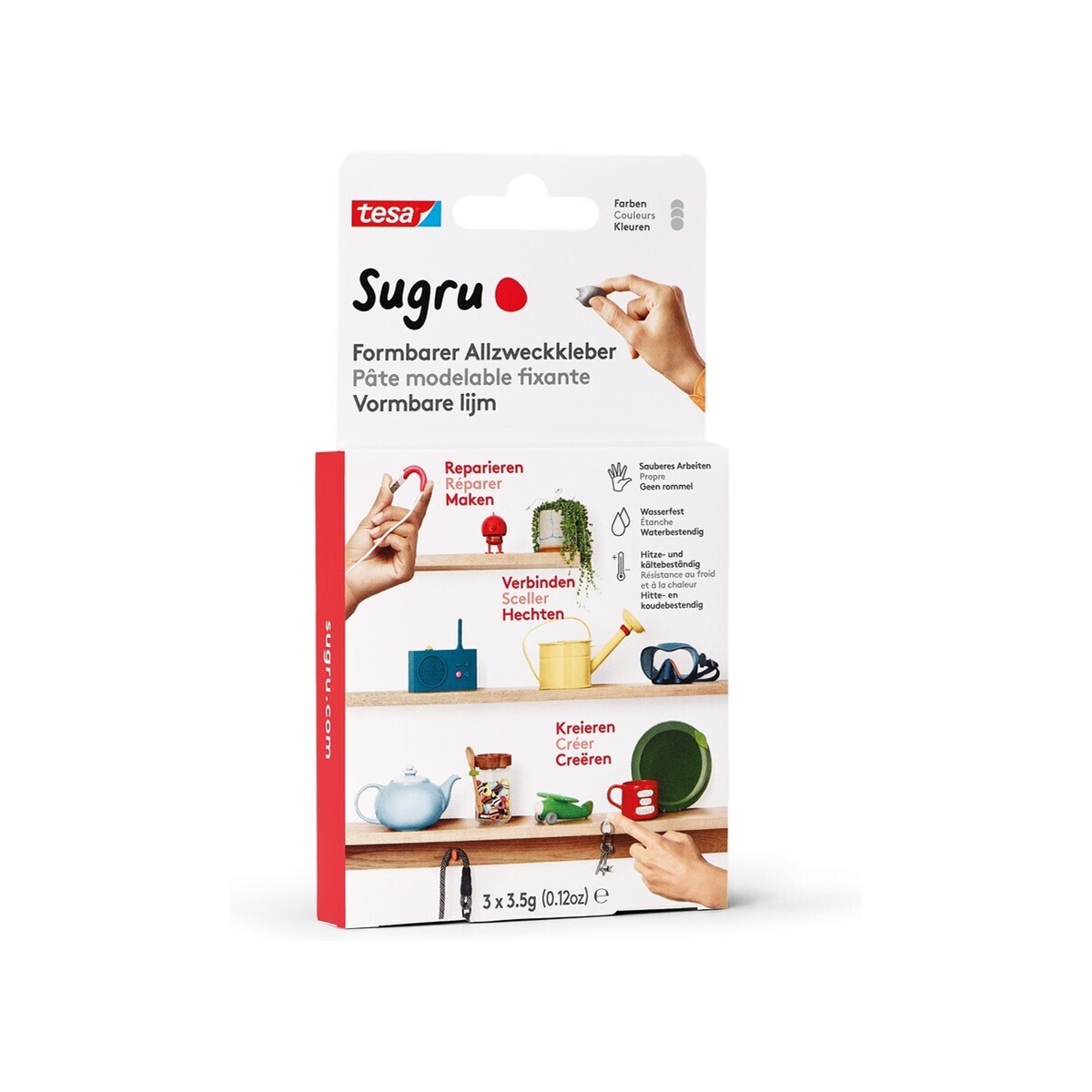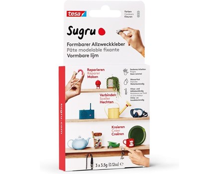 Entdecken Sie Sugru by tesa®, den weltweit ersten formbaren Allzweckkleber, der dauerhaft auf zahlreichen Materialien haftet und in einen haltbaren, flexiblen Silikongummi aushärtet.
