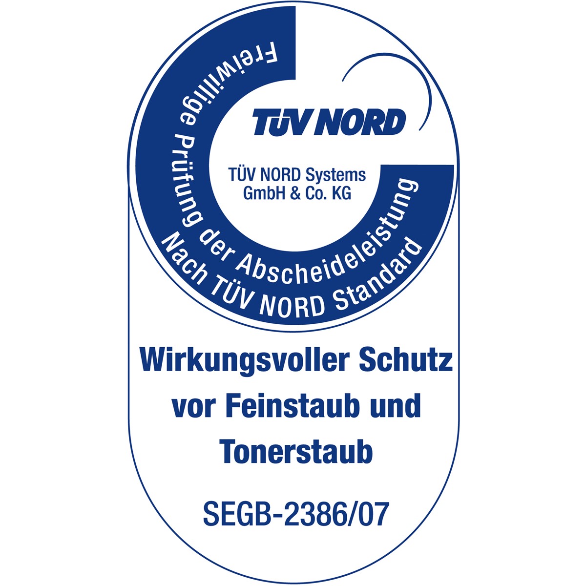 • TÜV NORD bestätigter Schutz vor Feinstaub und Tonerstaub