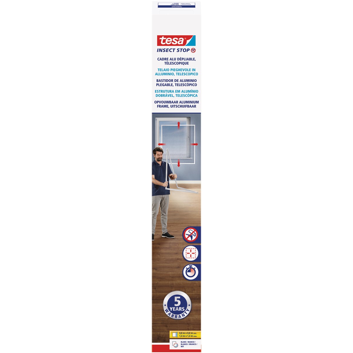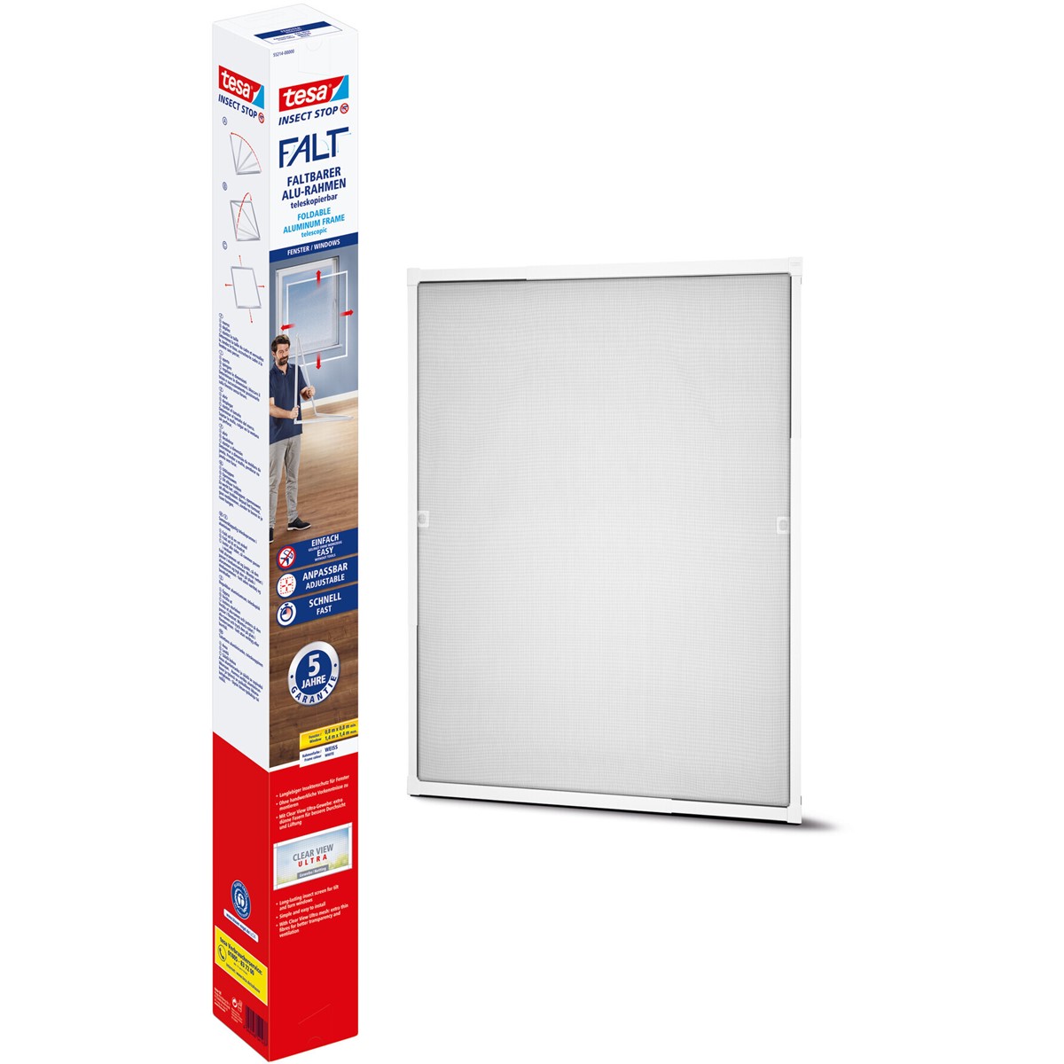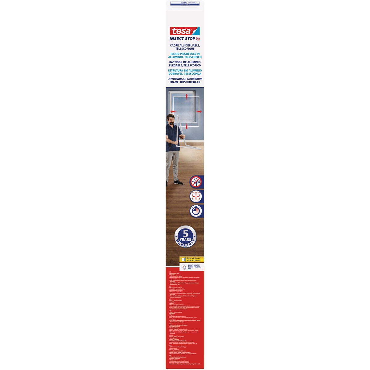 tesa® Insect Stop FALT - faltbarer Alu-Rahmen, teleskopierbar ist die langfristige Lösung, wenn es um Insektenschutz geht. Er ist das am einfachsten zu montierende und zudem frei einstellbare tesa® Fliegengitter für Fenster. Deshalb wird außer einer Schere für die Montage nichts benötigt. Nur vier Montage-Schritte für das Fliegengitter ohne Bohren: