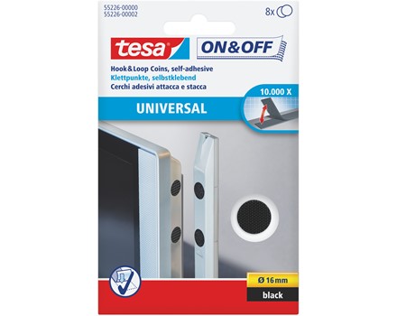 Die tesa ON & OFF® Klettpunkte Universal eignet sich ideal zum Befestigen von leichten Gegenständen überall im Haushalt – schnell, einfach und sicher.