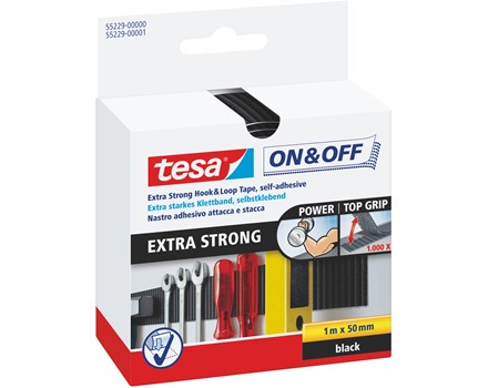 Die starke Lösung zum Befestigen von schweren Gegenständen: tesa ON & OFF® Extra Stark hält selbst schwere Gegenstände zuverlässig und sicher – überall in Haushalt und Werkstatt. Sie lassen sich bis zu 1.000-mal öffnen und schließen. Was macht tesa ON & OFF® Extra Stark so stark?