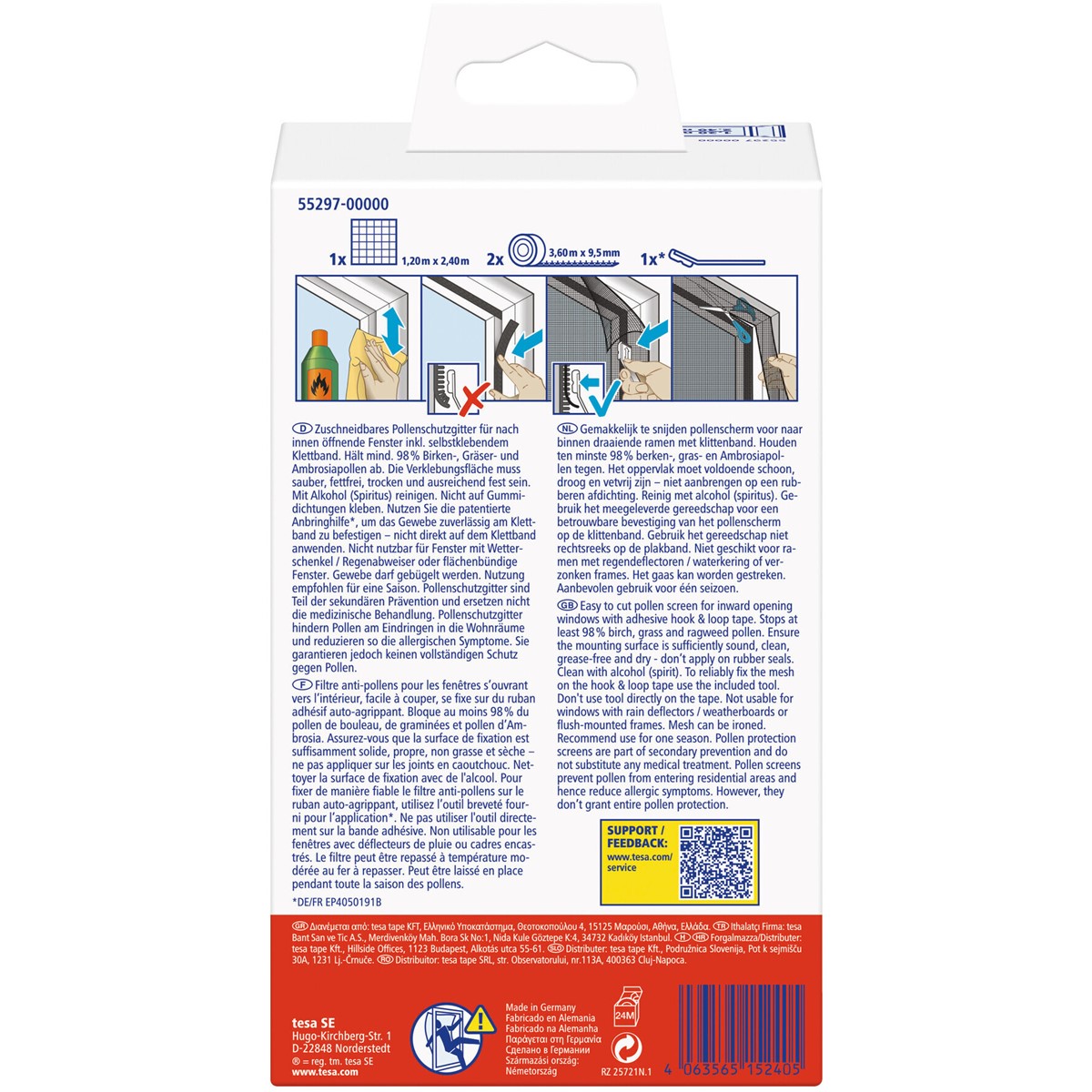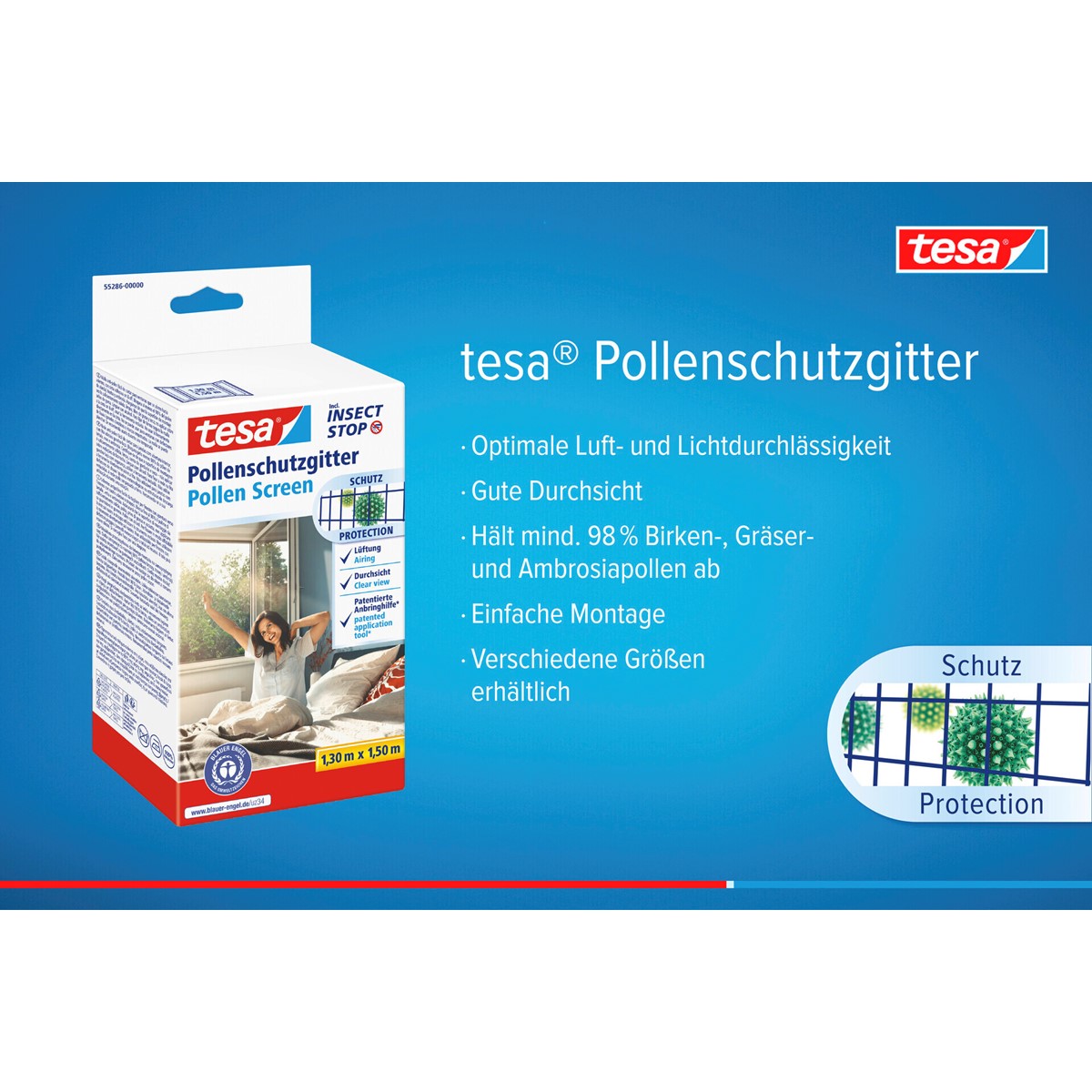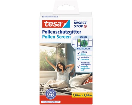 Wenn Sie Heuschnupfen haben, können Sie sich mit dem tesa® Pollenschutzgitter effektiv vor Pollen schützen. Dank des Pollengitters haben z.B. Birkenpollen kaum eine Chance, allergische Reaktionen auszulösen. Über 98% der Flugpollen werden gefiltert. Das Pollenschutzgitter, das sich für die meisten Fenster eignet, wurde daher mit dem ECARF-Qualitätssiegel für allergikerfreundliche Produkte ausgezeichnet. Das anthrazitfarbene Pollennetz lässt sich mit dem selbstklebenden Klettband einfach montieren.