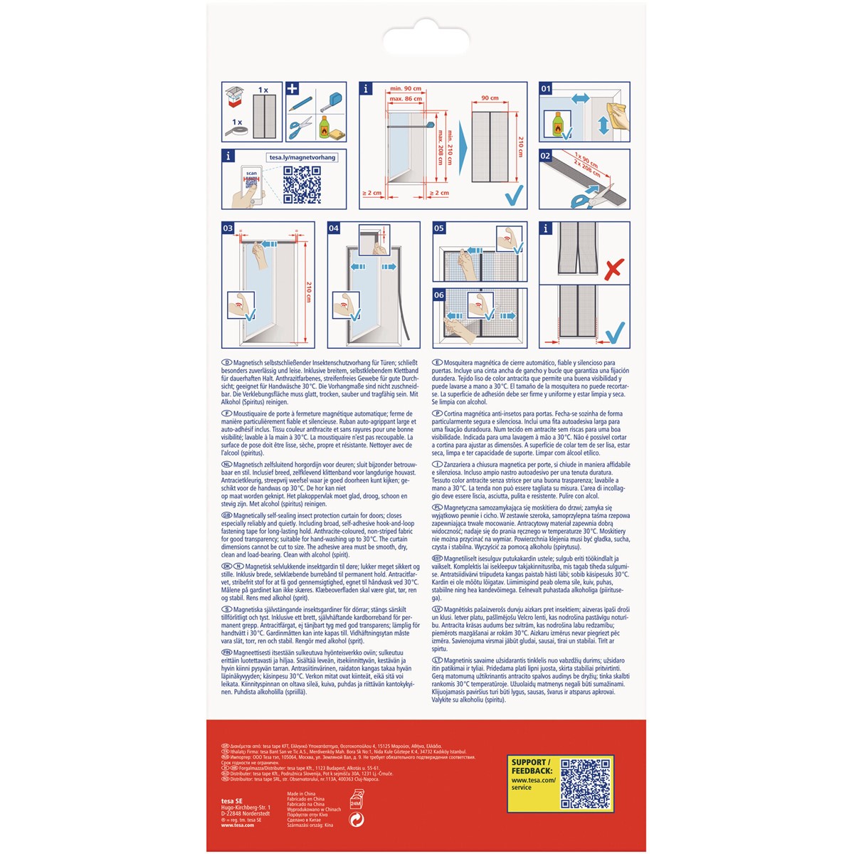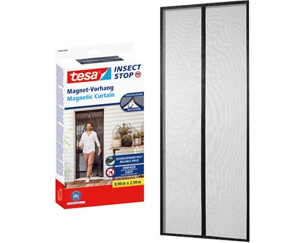 Selten war Schutz vor Insekten so unkompliziert. Damit Terrassen- und Balkontüren nicht zu einem Einfallstor für Mücken und Co. werden, hat tesa® diesen selbstschließenden Magnetvorhang entwickelt. Die 30 im Vorhang eingenähten Magnete machen den Unterschied: Der Türvorhang öffnet und schließt sich ganz ohne händische Betätigung. Gerade wenn Kinder im Haushalt sind, ist dies nützlich, doch auch Haustierbesitzer sind für diese magnetische Ausstattung dankbar. Das zuschneidbare, breite Klettband ermöglicht auch handwerklichen unerfahrenen Nutzern eine mühelose, schnelle und bohrfreie Montage.
