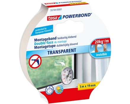 Für die unsichtbare Befestigung, z.B. von transparenten Gegenständen oder beim Anbringen auf Glasscheiben, bietet das tesa Powerbond® TRANSPARENT eine hervorragende Lösung.