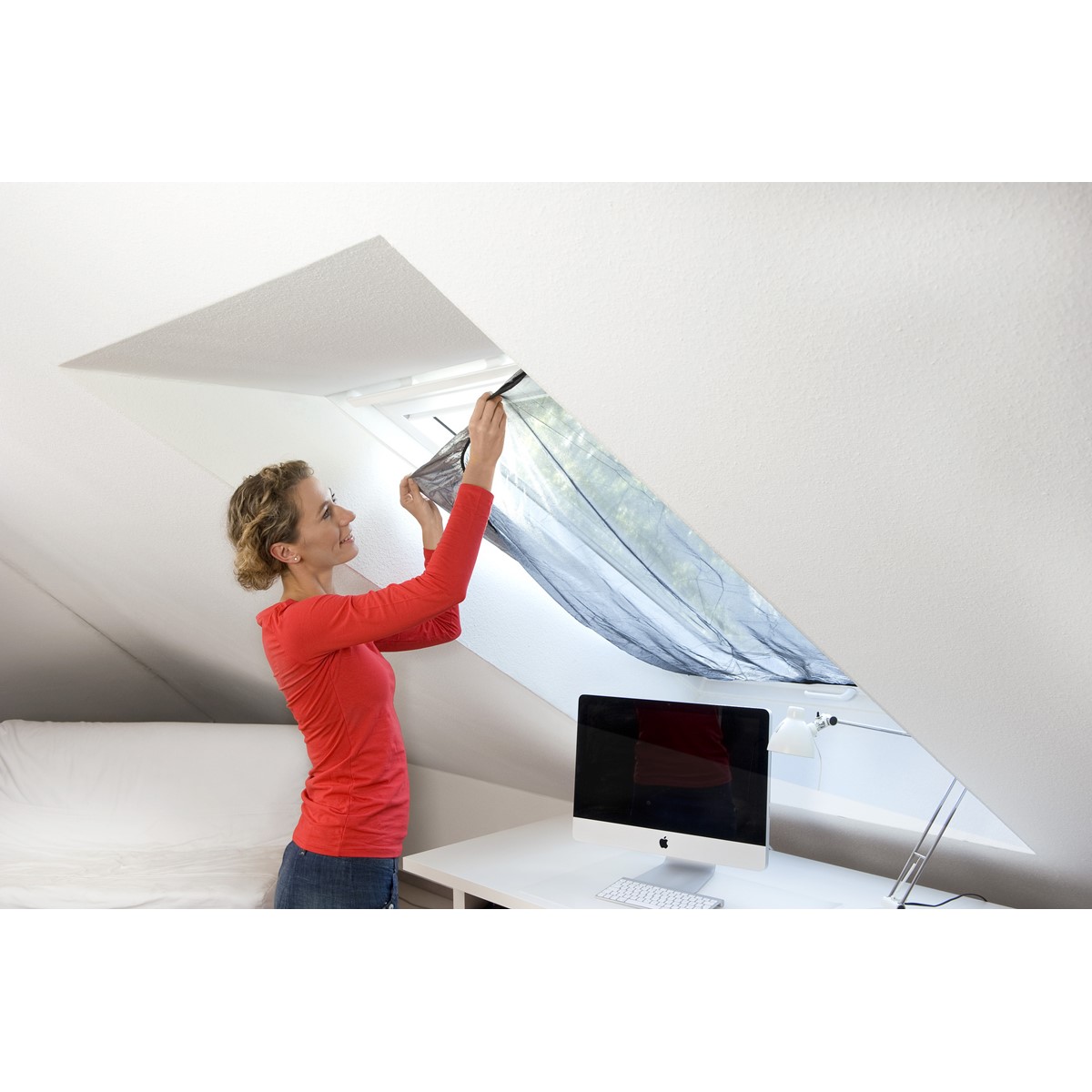 tesa Fliegengitter Insect Stop SUN PROTECT mit Sonnenschutz für Dachfenster sorgt für frische Luft an Fenstern in Dachschrägen. Die reflektierende Außenseite sorgt für spürbare Hitzereduktion im Zimmer.