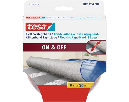 Das tesa® Klett Verlegeband zur sicheren Fixierung von Teppichen mit Vlies- oder Filzrücken. Mit der besonderen Hakenknopf-Technologie gibt es kein Verrutschen oder Faltenschlagen.