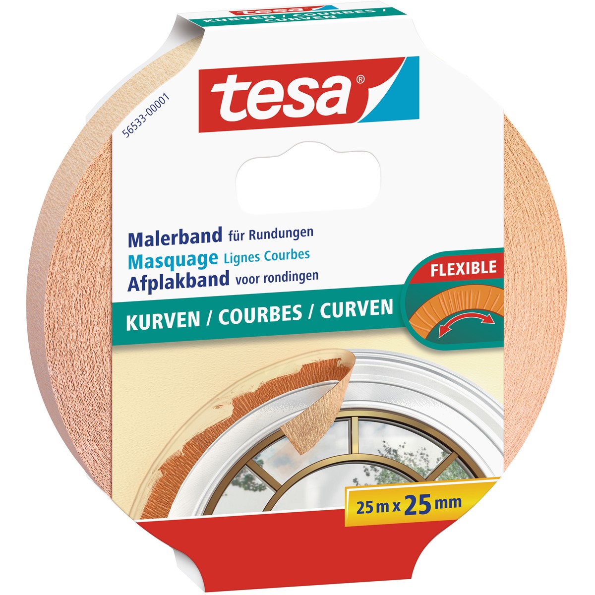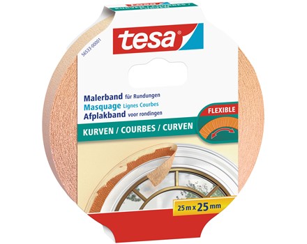 Das stark gekreppte tesa® Malerabdeckband KURVEN ist besonders flexibel und dehnbar. Daher eignet es sich ideal zum Abkleben von Rundungen, Kurven und anderen unregelmäßigen Formen. Es lässt sich schnell und einfach anbringen und im Innenbereich innerhalb von sieben Tagen rückstandslos entfernen. Zudem ist es für alle Farbtypen geeignet und wird zu 70% aus nachwachsenden Rohstoffen hergestellt.