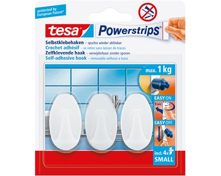 • Die Haken SMALL sind mit tesa Powerstrips® SMALL mehrfach verwendbar
