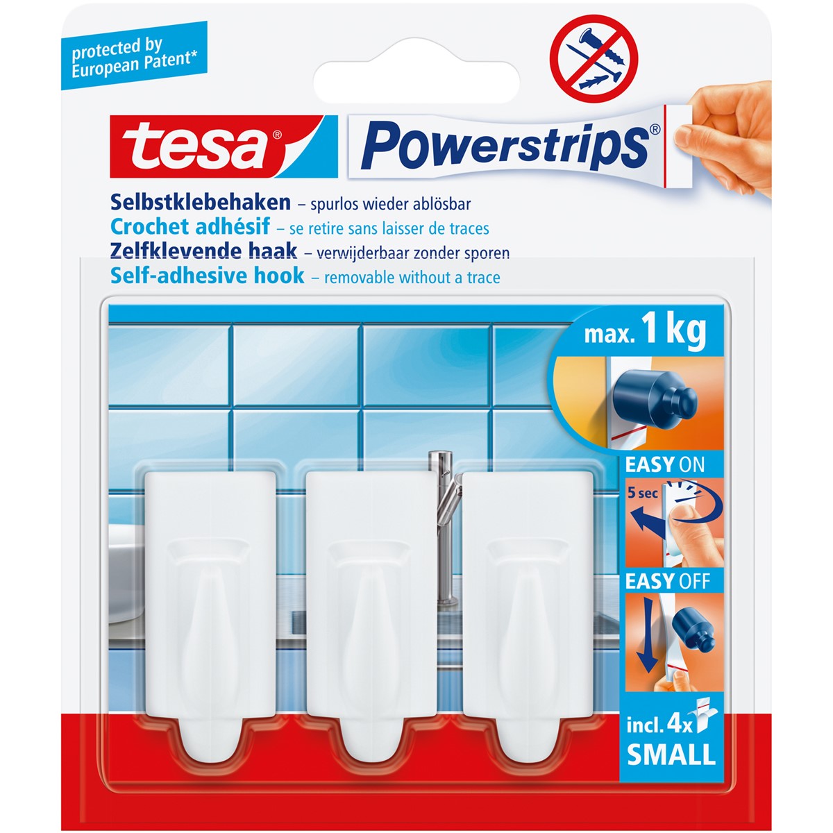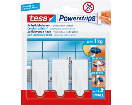 Die kleineren tesa Powerstrips® Haken SMALL haben eine Halteleistung bis zu maximal 1 kg.