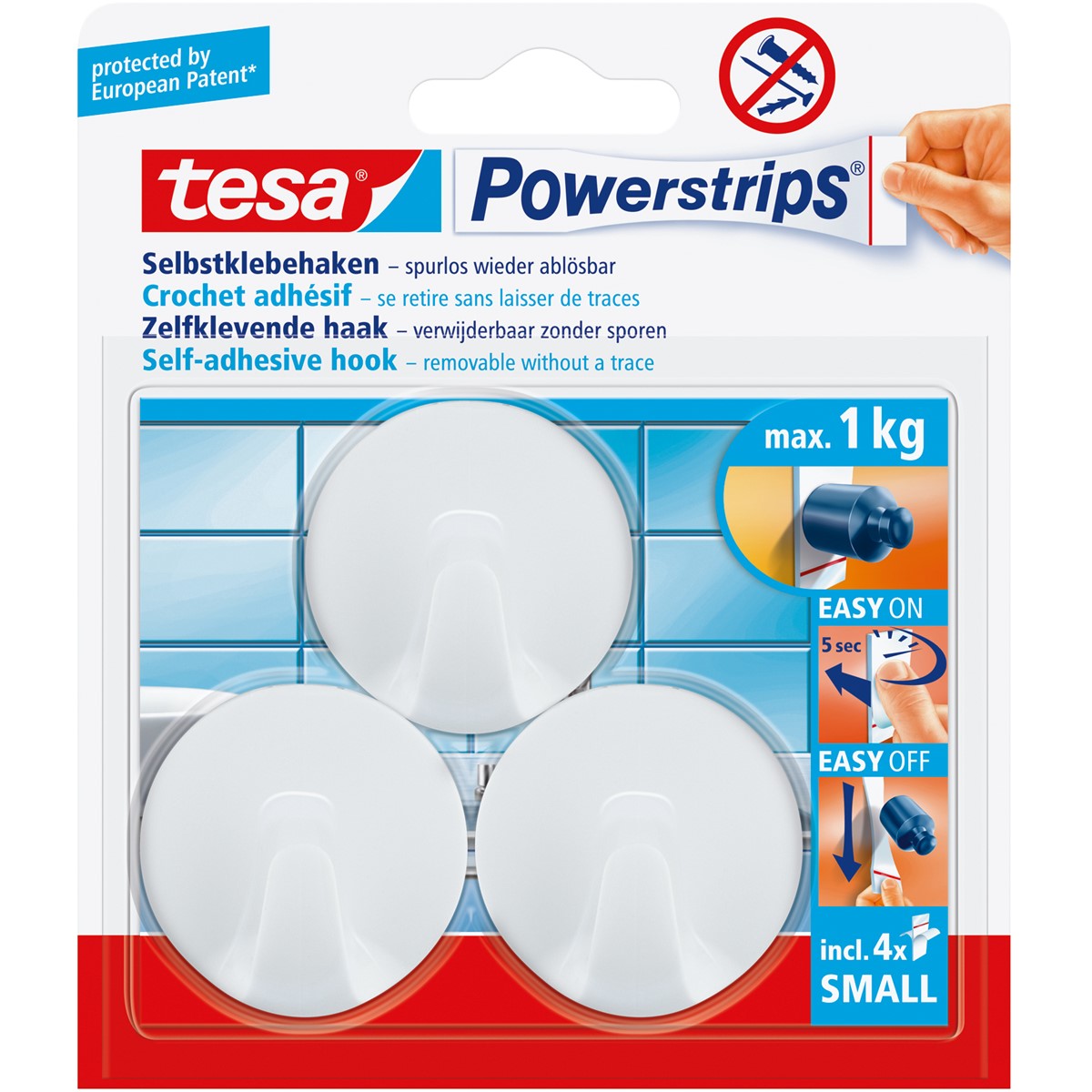 Die kleineren tesa Powerstrips® Haken SMALL haben eine Halteleistung bis zu maximal 1 kg.