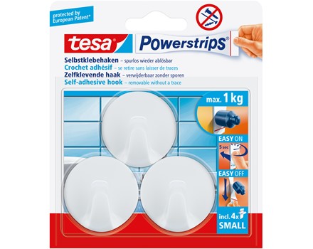 • Die Haken SMALL sind mit tesa Powerstrips® SMALL mehrfach verwendbar