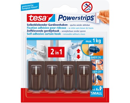 • Die Vario-Gardinenhaken sind mit tesa Powerstrips® SMALL mehrfach verwendbar