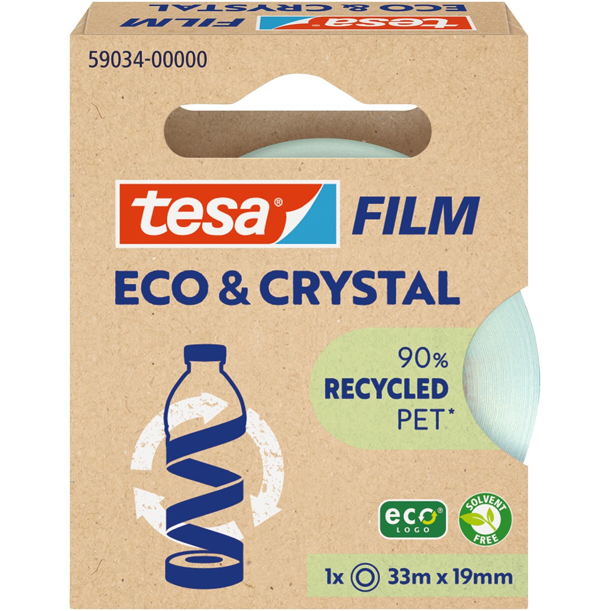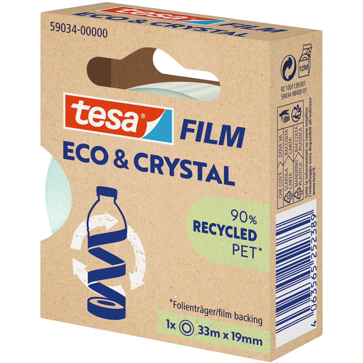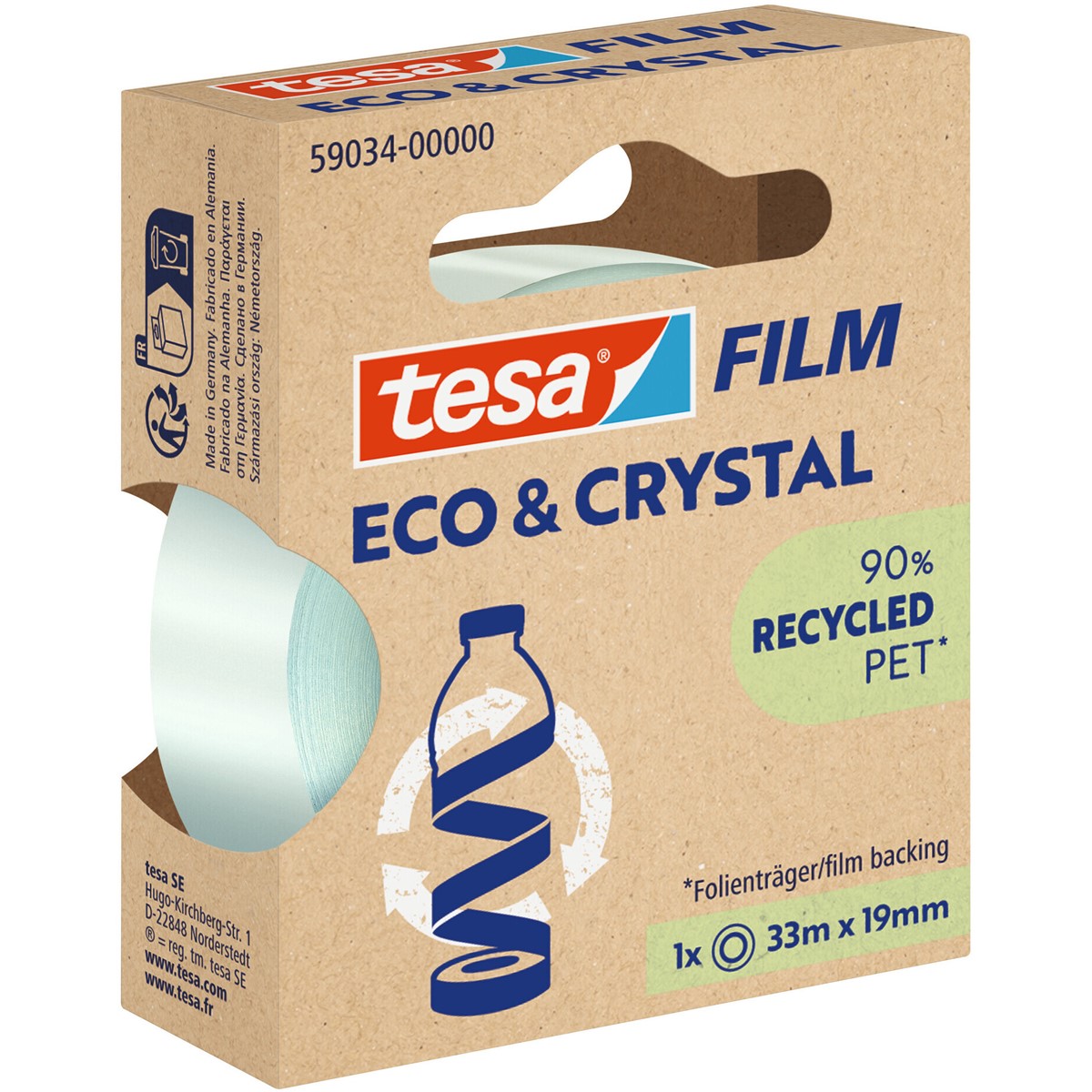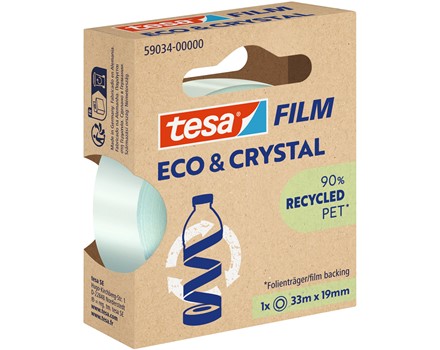 tesafilm® eco & crystal bietet starke Klebeleistung und ist dabei voll transparent. Die Qualität von tesa® und das zukunftsweisende Herstellungsverfahren zeichnen dieses Klebeband aus.Das Trägermaterial besteht zu 90% aus recycelten PET-Flaschen, zertifiziert nach UL 2809 (ECVP). Der Rollenkern besteht zu 100% aus Recycling-Plastik. Der reißfeste Klebefilm ist äußerst langlebig und lässt sich nahezu geräuschlos von der Rolle abziehen.Die Rollen sind mit allen verfügbaren Abrollern von tesafilm® kompatibel. Bei dem Klebstoff handelt es sich um einen wasserbasierten Acrylkleber ohne Lösemittel. Vielseitig verwendbar, ob zum Kleben, Verpacken, Befestigen, für Dekorationen oder für Reparaturarbeiten.