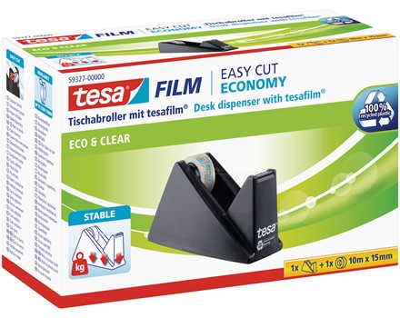 Formschöner tesafilm® Tischabroller im praktischen Sparpack für Büro und Haushalt.