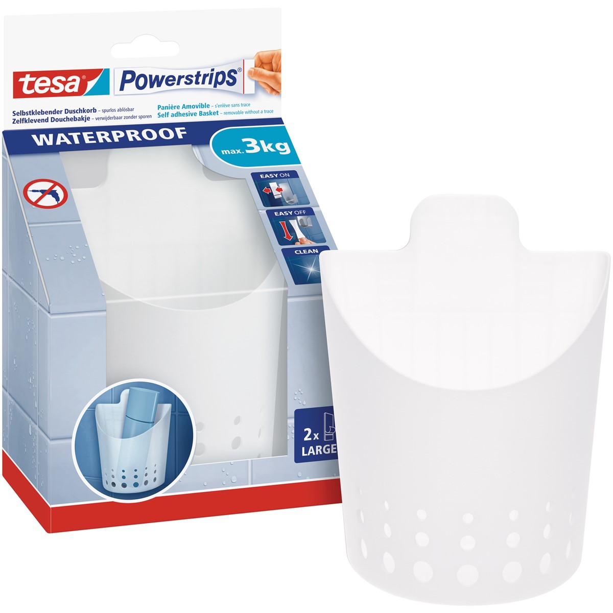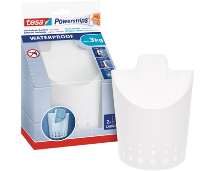Die tesa Powerstrips® Waterproof Körbe wurden speziell für die Aufbewahrung von Duschgel, Shampoo und anderen Badutensilien entwickelt. Sie eignen sich ebenfalls für den Einsatz in der Küche, für Spühlmittel und Küchenschwämme. Dank der tesa Powerstrips® Technologie können sie bei Bedarf einfach und spurlos wieder abgelöst werden.