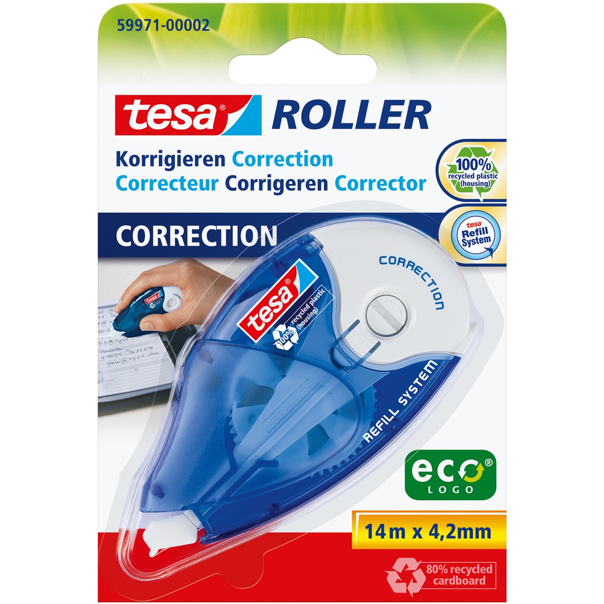 Der tesa Roller Korrigieren ecoLogo® ist praktisch und handlich für jeden, der etwas zu korrigieren hat, und ermöglicht präzise Korrekturen auf Papier.