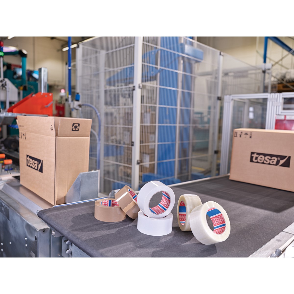 tesa® 60418 ist ein nachhaltigeres Kartonverschlussband für leichte und mittelschwere Kartons mit einem Gesamt-Recyclinganteil von 60 %. tesa® 60418 besteht aus einer Schmelzklebmasse aus synthetischem Kautschuk mit hoher Anfassklebkraft und einem sehr dünnen Polyesterträger, der zu 85 % aus Post-Consumer-Recyklat besteht. Aufgrund der hervorragenden Eigenschaften des Trägermaterials ist tesa® 60418 sowohl dünn als auch anpassungsfähig und dennoch reißfest. Es zeichnet sich durch eine geringe Abrollkraft und ein sehr gute sofortige Schließleistung aus und ist damit ideal für automatisierte Prozesse. tesa 60418 ist eine ausgezeichnete Wahl für Verpackungsanwendungen mit hohem Volumen, bei denen sowohl Effizienz als auch Nachhaltigkeit entscheidende Faktoren sind.
