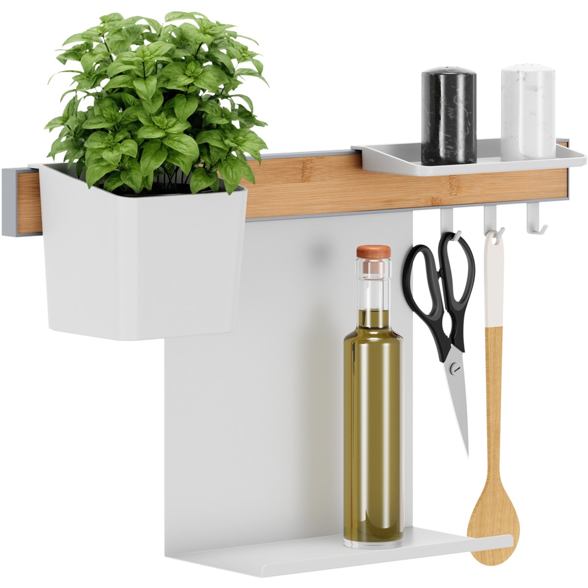 Alltägliche Abläufe werden erleichtert, wenn alles an seinem Platz ist. Das tesa® Küchen-Organizer Kombi-Set S bringt Ordnung in die Küche und schafft neuen Stauraum an der Wand. Die einfache Montage lässt Fliesen und Wände unbeschadet. Dank der leicht verständlichen Anleitung und dem bewährten Montagekit gelingt die Montage wirklich jedem. Mit den passenden Single-Sets von tesa® Küchenzubehör können die Funktionen nach eigenen Vorstellungen erweitert werden - für mehr Flexibilität in der Küche. Der Organizer ist nicht nur einfach zu befestigen - bei Bedarf kann er auch leicht entfernt werden. Sicherheitshinweis zum tesa® Power.kit Kleber: Achtung! Bei der Verarbeitung kann gefährlicher lungengängiger Staub entstehen. Staub nicht einatmen. Das Kombi-Set S besteht aus Reling (6 x 60 x 2 cm), Kräutertopf (13,5 x 13,5 x 14 cm), 3 Haken (5 x 1,5 x 2 cm), großer Ablage (28,5 x 19,5 x 14 cm), kleiner Ablage (2 x 19,5 x 10 cm) und einer Wasserwaage. Halteleistung: 10 kg.