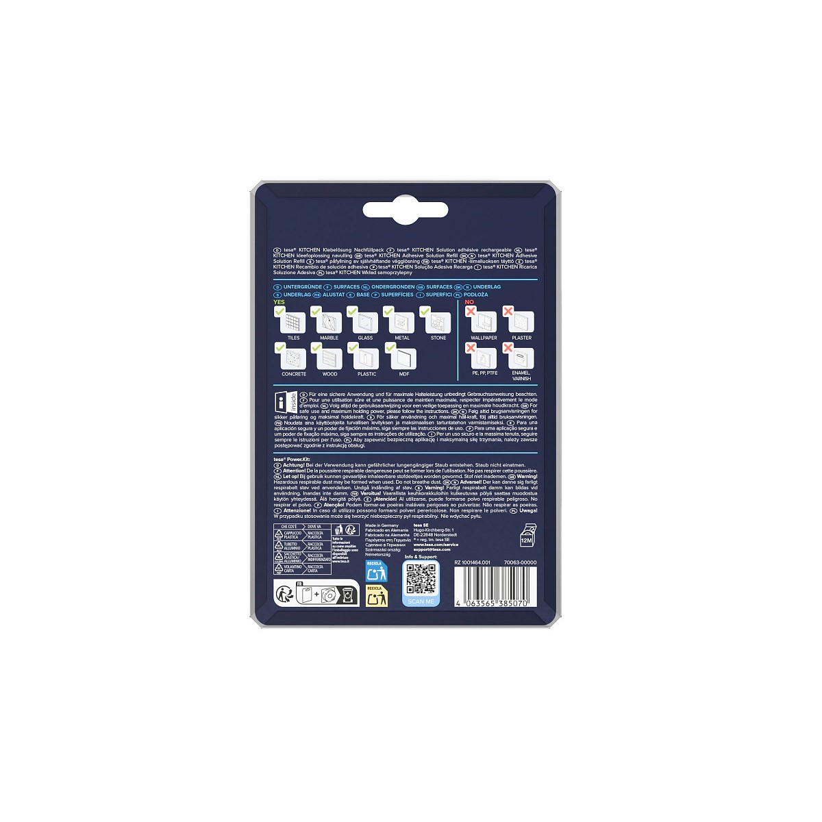Das tesa® Power.Kit Nachfüllpack bietet die ideale Lösung, um das flexible Küchenzubehör Kombi-Set wieder zu verwenden. Mit diesem Set kann die Reling ganz einfach neu positioniert oder in einer neuen Küche angebracht werden. Die innovative Power.Kit Klebetechnologie ermöglicht eine unkomplizierte Montage ohne Bohren, Werkzeug oder handwerkliche Erfahrung. Die Küchen-Kombi-Sets sowie die Zubehör-Produkte von tesa® können jederzeit rückstandslos entfernt und neu angebracht werden, ohne Rückstände oder Schäden an den Wänden zu hinterlassen. Das Nachfüllset haftet sicher auf den meisten festen Oberflächen wie Fliesen, Glas, Metall, Holz oder Kunststoff - für maximale Flexibilität bei der Gestaltung und eine nahtlose Integration in jede Küche. Im Lieferumfang enthalten sind zwei Power.Kit-Adapter, ein Klebeapplikator, ein Klebeflügel und zwei Schrauben.
