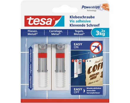 tesa Powerstrips Verstellbare Klebeschraube für Fliesen und Metall