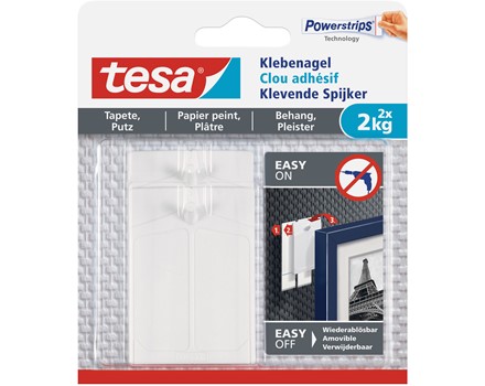 Der Klebenagel verfügt dank der überlegenen tesa® Klebetechnologie über eine Haltekraft von bis zu 2kg auf strukturierten und empfindlichen Untergründen wie Tapeten und Putz und ist eine clevere Alternative zu den traditionellen Befestigungs- und Aufhängungslösungen.