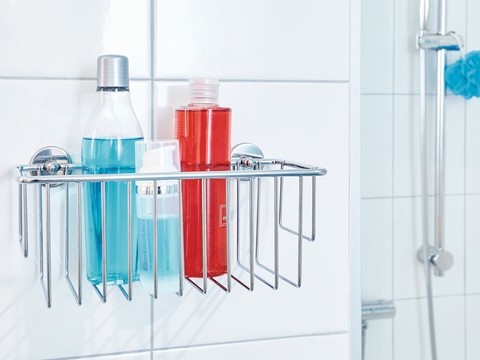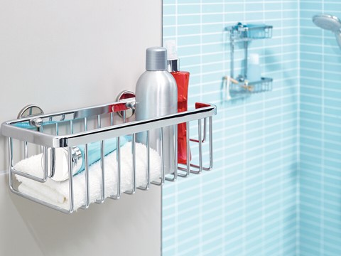 tesa Bad-Design baath Kleben statt Bohren Ablagen und KörbeVerchromtes Metall, glänzendrostfreiinkl. Klebelösung