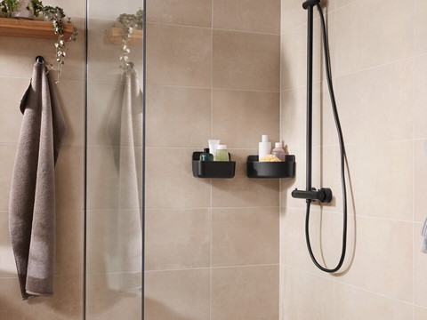 tesa Bad-Design ALUXX Kleben statt Bohren Ablagen und Körbeglänzendes Chrom oder matt-schwarzrostfreiinkl. Klebelösung