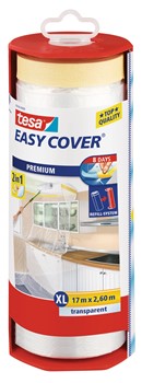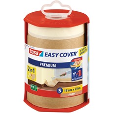 Das praktische ”2-in-1 Produkt“ tesa Easy Cover® Premium ist eine Kombination aus bewährter tesa® Maler-Krepp-Qualität und Abdeckfolie.
