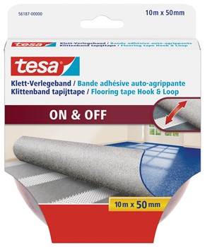 Das tesa® Klett Verlegeband zur sicheren Fixierung von Teppichen mit Vlies- oder Filzrücken. Mit der besonderen Hakenknopf-Technologie gibt es kein Verrutschen oder Faltenschlagen.