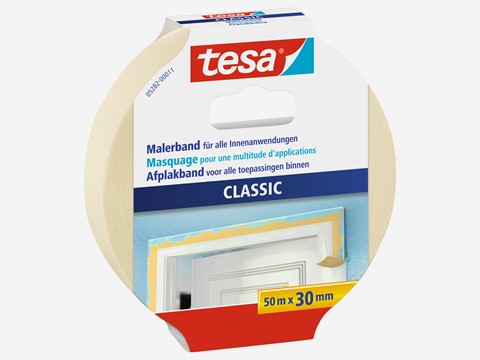 Das hochwertige tesa Maler-Krepp Premium Classic zum sauberen Abdecken von geraden Kanten und leichten Kurven im Innen- und Außenbereich.