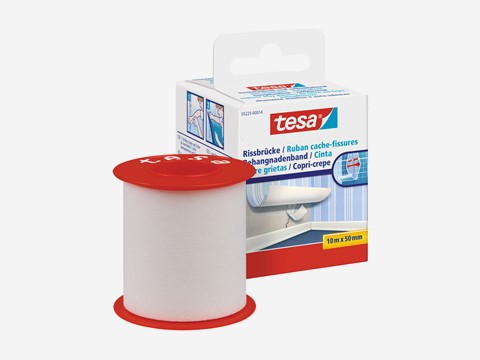 Wer kleine Risse in der Wand bzw. im Putz hat, muss nicht zur Spachtel greifen. Mit der tesa Rissbrücke gelangt man schneller und einfacher ans Ziel. Mit tesa Rissbrücke lassen sich Risse in der Wand im Handumdrehen ausbessern. Einfach auf die Risse oder Löcher kleben und schon kann mit dem Tapezieren oder streichen begonnen werden.