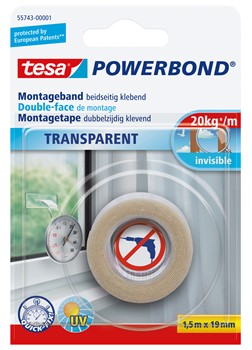 Für die unsichtbare Befestigung, z.B. von transparenten Gegenständen oder beim Anbringen auf Glasscheiben, bietet das tesa Powerbond® TRANSPARENT eine hervorragende Lösung.