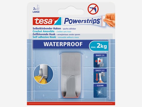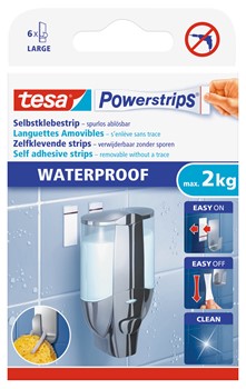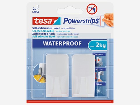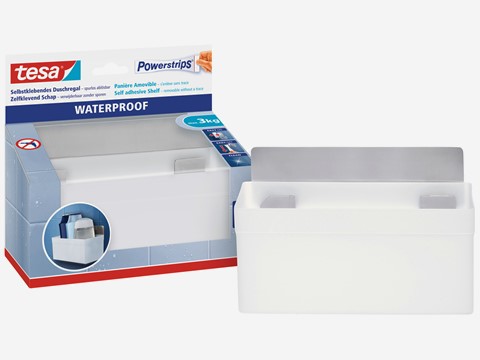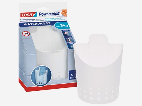Das tesa Powerstrips® Waterproof Sortiment bietet eine große Auswahl an doppelseitig klebenden Befestigungslösungen und -systemen. Die wasserfesten tesa Powerstrips® Waterproof ermöglichen alle Vorteile der Powerstrips® Technologie und verfügen über eine erhöhte Haltekraft von bis zu 3 kg. Mit dem tesa Powerstrips® Waterproof Sortiment schaffen Sie überall dort Platz, wo eigentlich keiner ist - sogar in der Duschkabine.