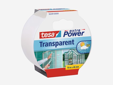 tesa extra Power Transparent Transparentes Reparaturband mit sehr guter Klebkraft auf rauen und glatten UntergründenVon Hand einreißbar