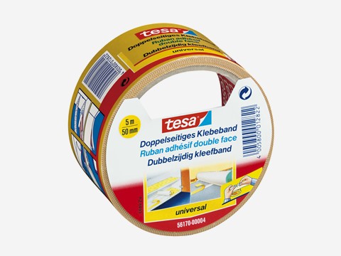 tesa Doppelseitiges Klebeband universal Sicherer und permanenter HaltMultifunktional einsetzbar beim Verlegen von Teppichen sowie bei Bastel- und Dekorationsarbeiten
