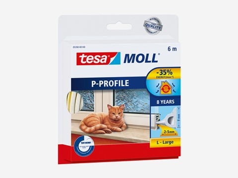 Das tesamoll P-Profil aus Gummi eignet sich besonders als Fensterdichtung oder Türdichtung. Aufgrund des Hohlprofils ist es in der Lage, größere Spalten von 2-5 mm zu schließen. Das tesamoll P-Profil ist selbstklebend und lässt sich mit wenigen Handgriffen an Fenster oder Türrahmen befestigen.